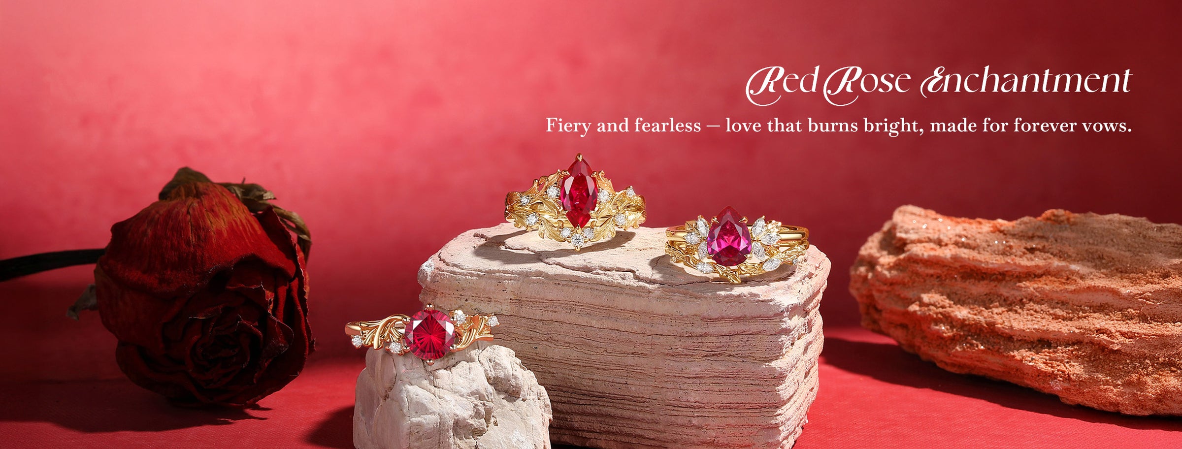 Clarissa - Firework Cut Lab Ruby Branch Leafy Inspired Engagement Ring