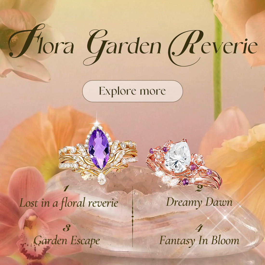Each design draws from the sun, moon, stars, and flora, reflecting the essence of the earth and crafted with sustainability in mind. Wear our rings to embrace nature’s eternal beauty, where every sparkle tells a story of romance and grace.