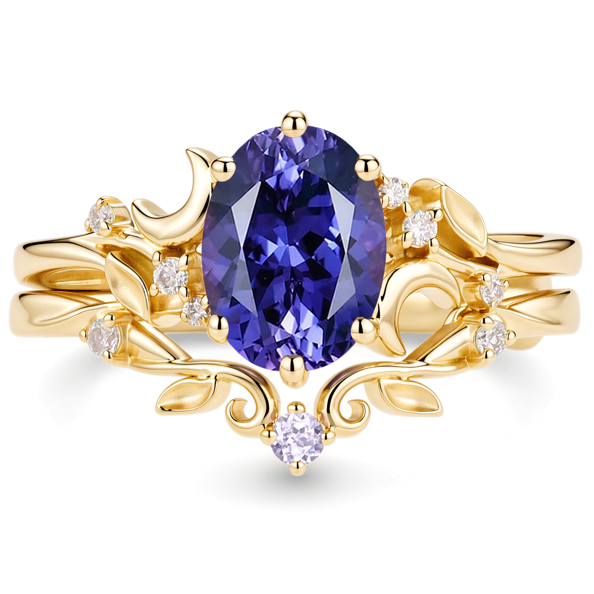 Eden - Oval Cut Moissanite Leaf Branch Engagement Ring Set 2pcs