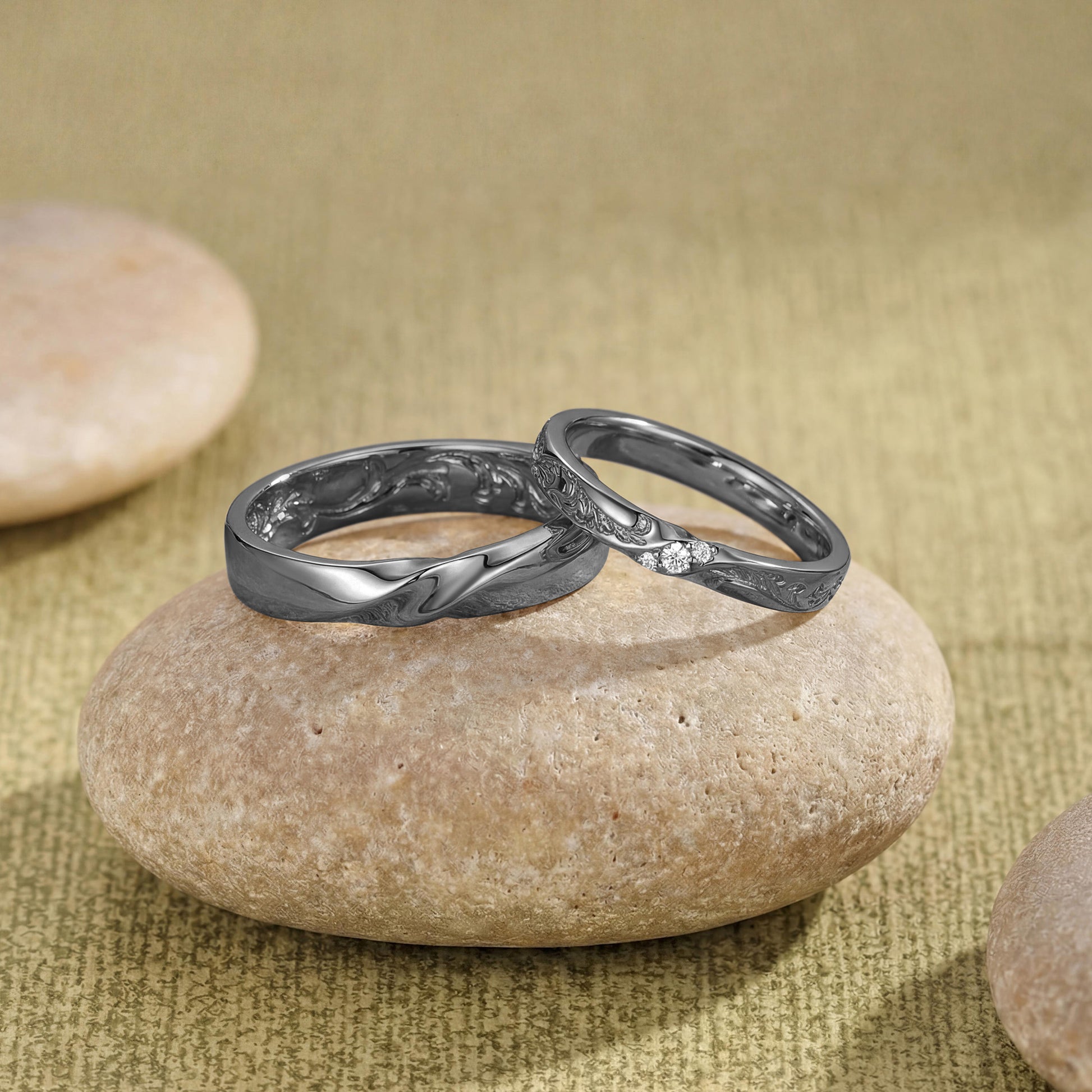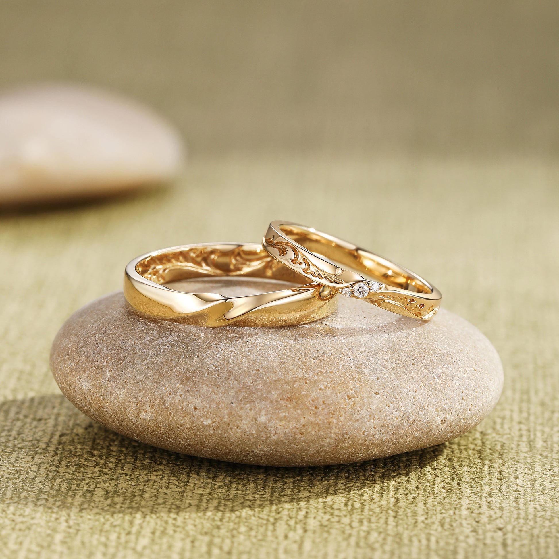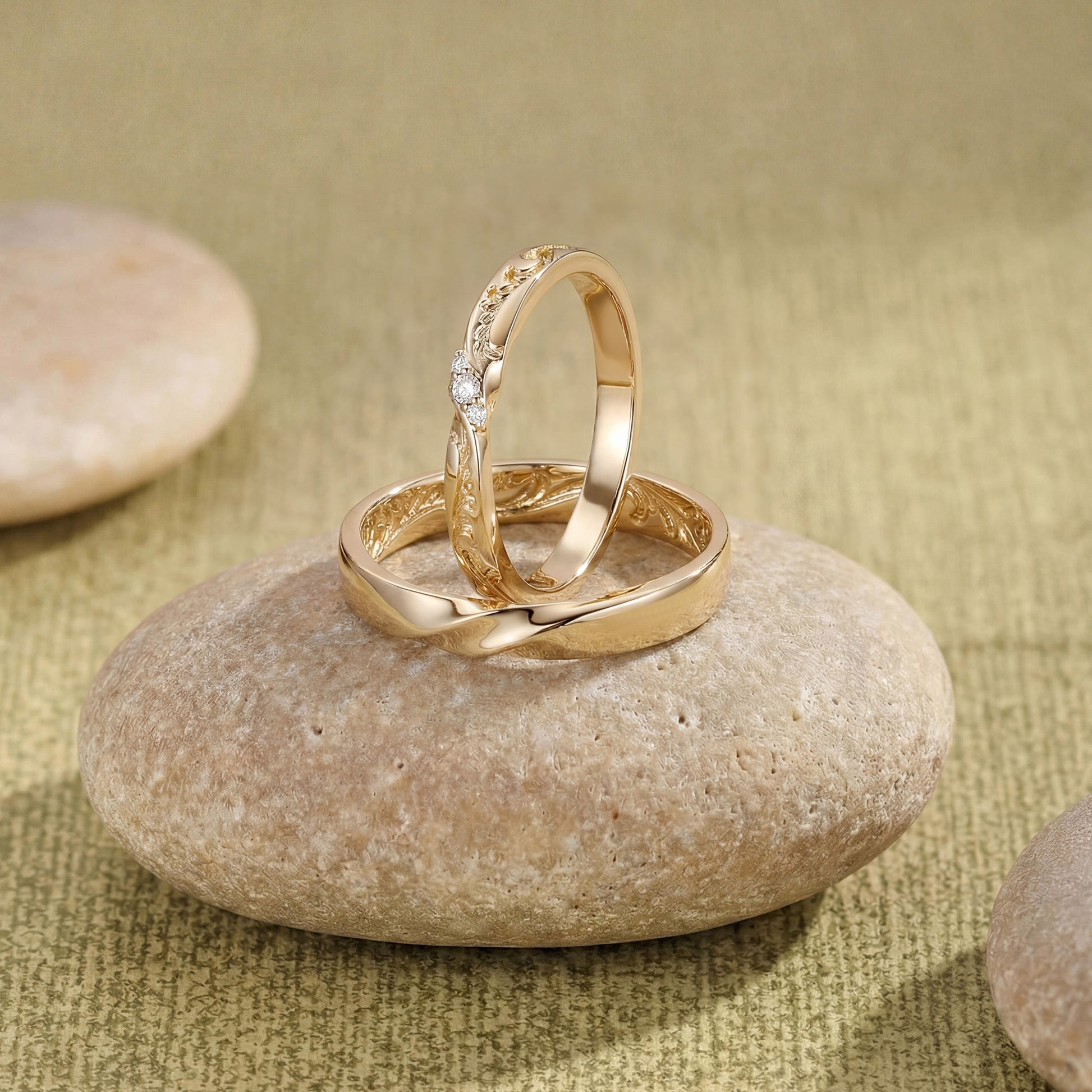 Monique - Unique Gold Design Moissanite Leafy Couple Ring