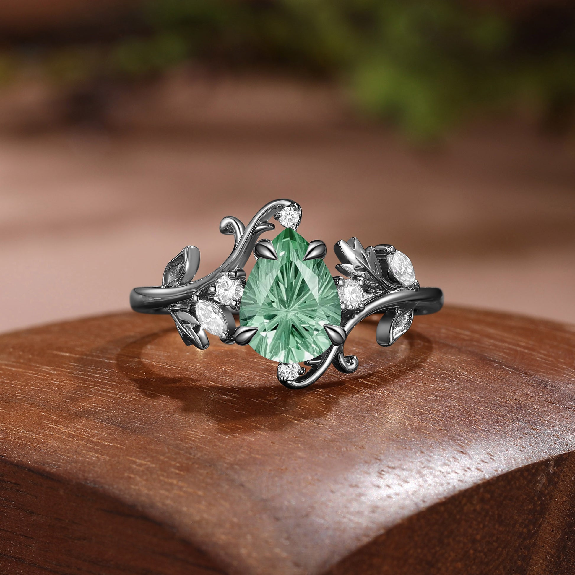 Forest Fairy Firework Cut Pear Green Sapphire Leafy Bridal Set 2pcs - Lavinia