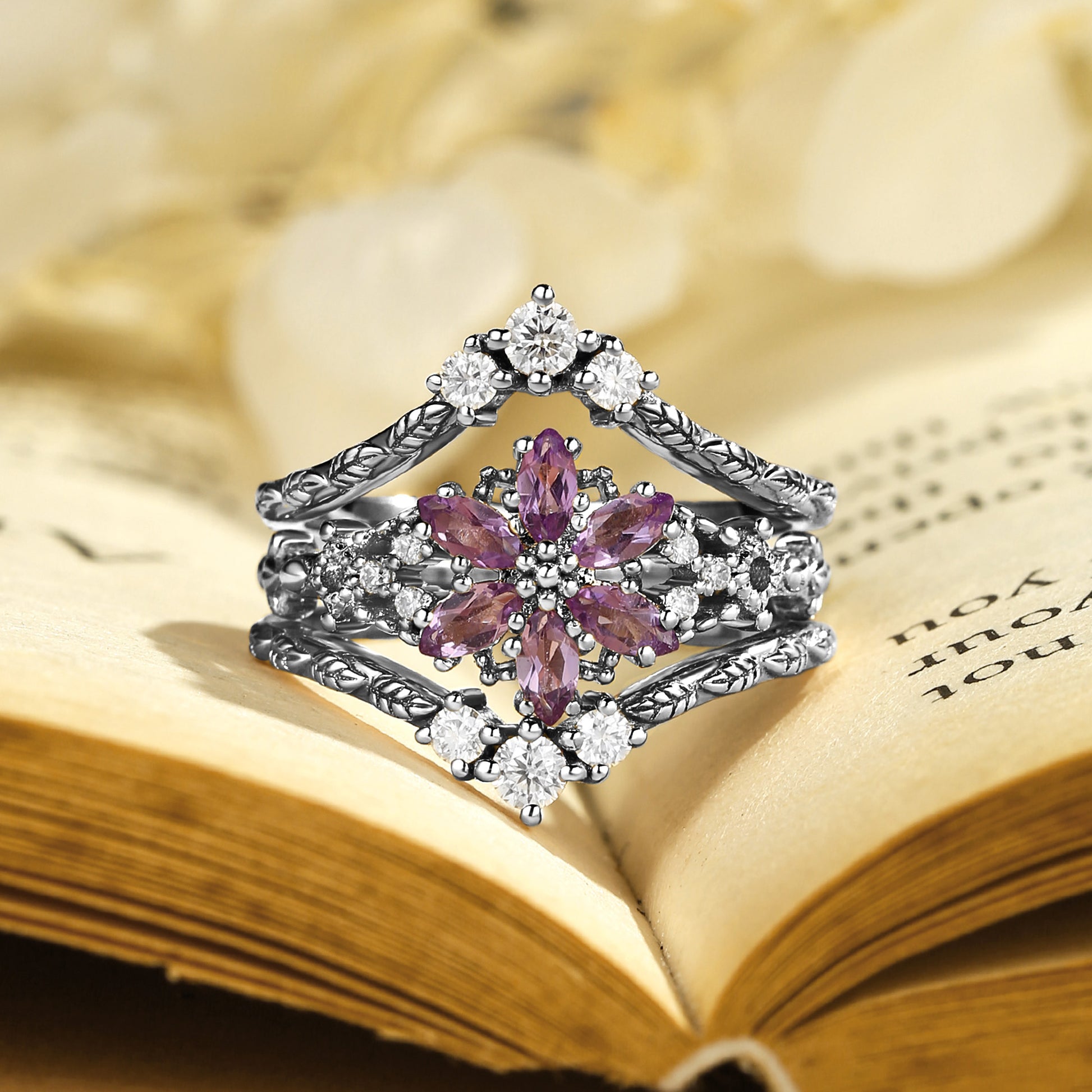 Marguerite - Amethyst Leafy Engagement Ring Set 2pcs