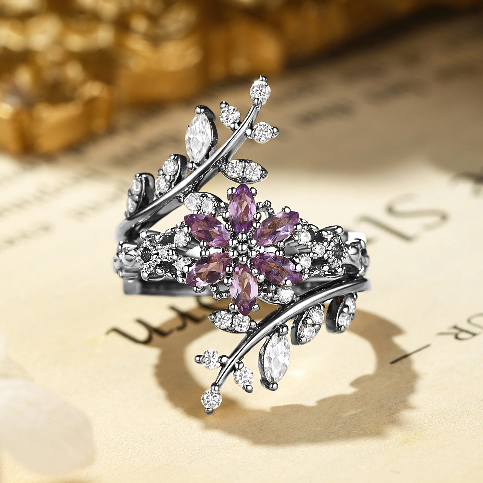 Marguerite - Flower Amethyst Cluster Bridal Set 2pcs