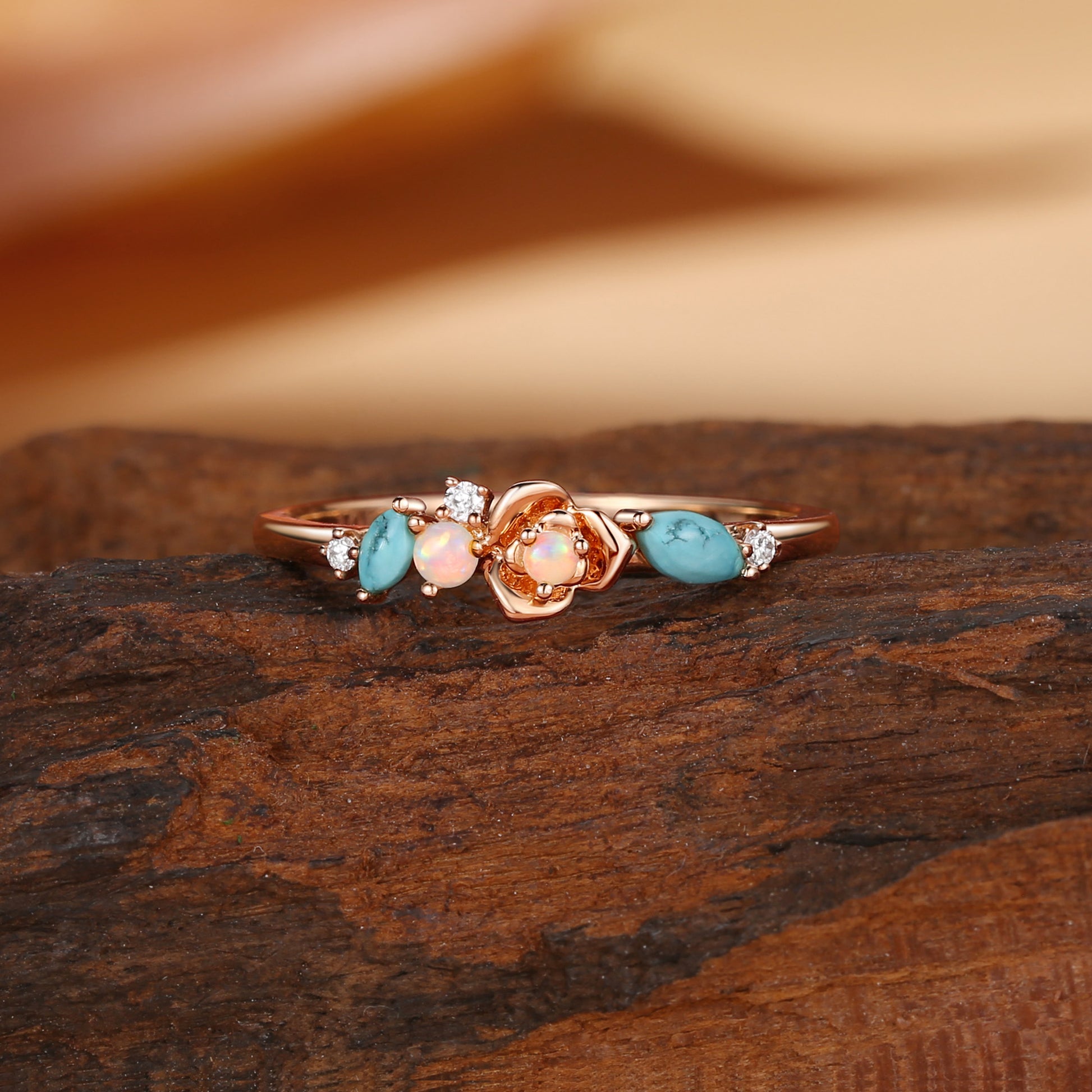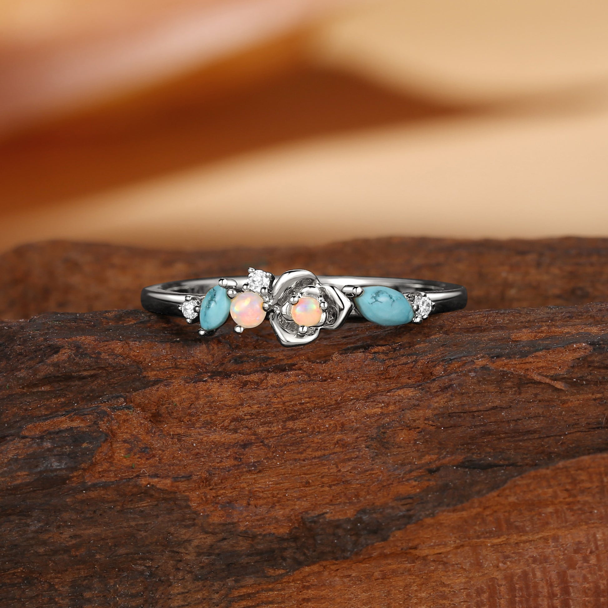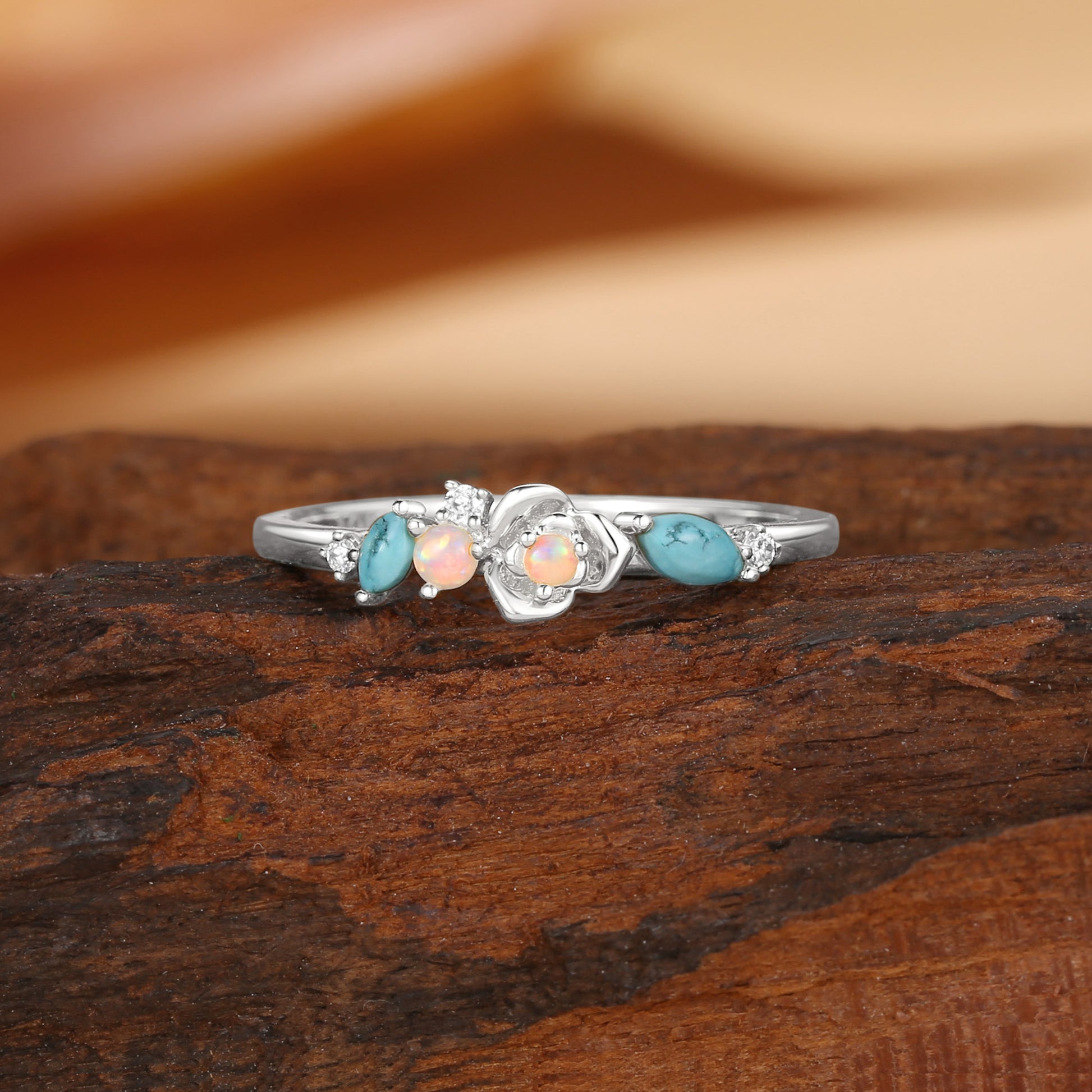 - Accent Stones: Moissanites,Lab Opal,Turquoises, D clarity, VS-VVS color, 0.35ct total weight.