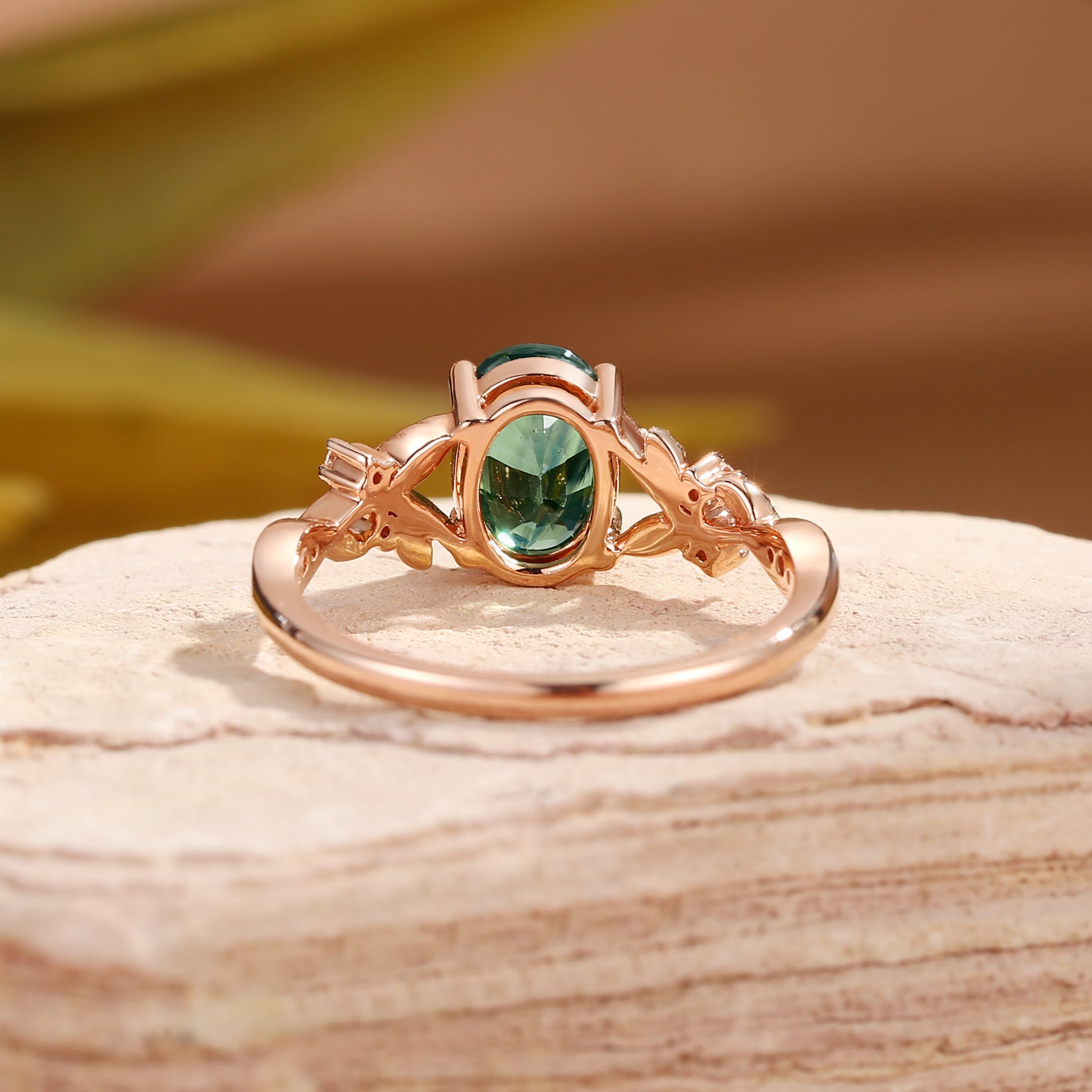 Bellamy - Natural Green Sapphire Leaf Engagement Ring