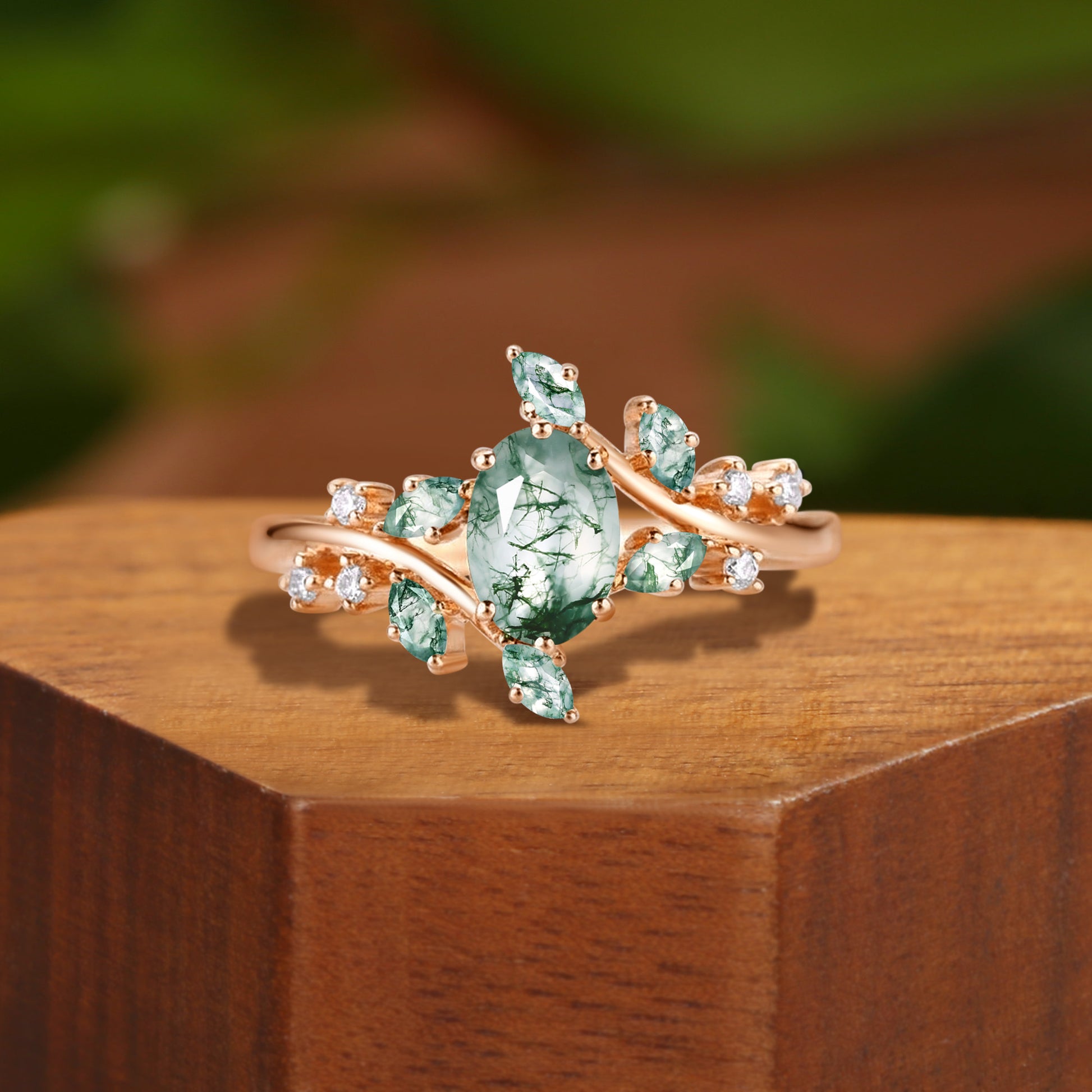 Bella - Moss Agate Cluster Inspired by Nature Engagement Ring