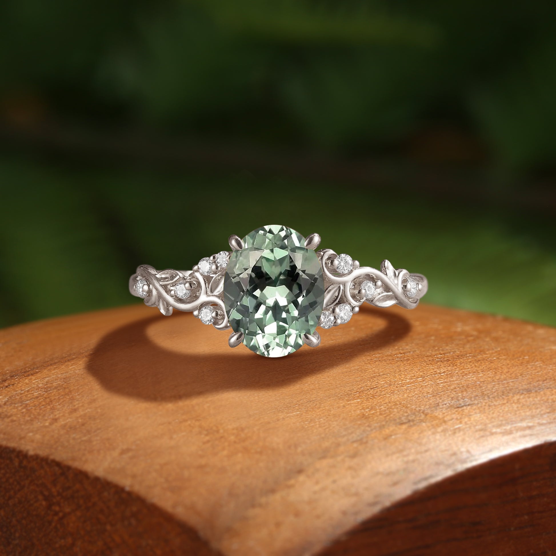The Breeze engagement ring showcases a delicate filigree design paired with a mint light green lab-grown sapphire. This ethically crafted stone offers a gentle, nature-inspired hue, perfect for symbolizing fresh beginnings and lasting love. Its intricate setting complements the sapphire’s subtle elegance, creating a timeless piece that celebrates natural beauty and sustainability.