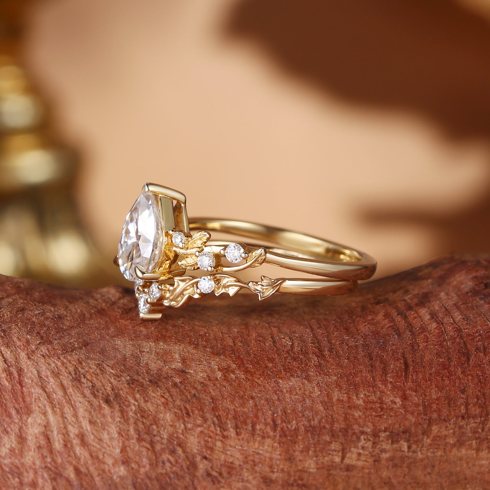 Clarissa - Pear Cut Moissanite Vine Inspired Leafy Bridal Set 2pcs