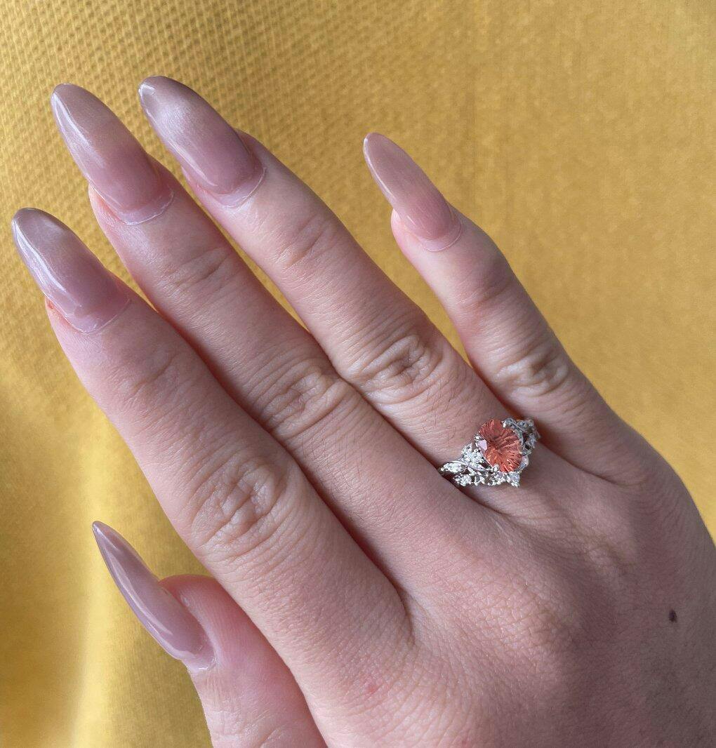 Eden - Oval Firework Cut Orange Sapphire Leaf Branch Engagement Ring Set 2pcs