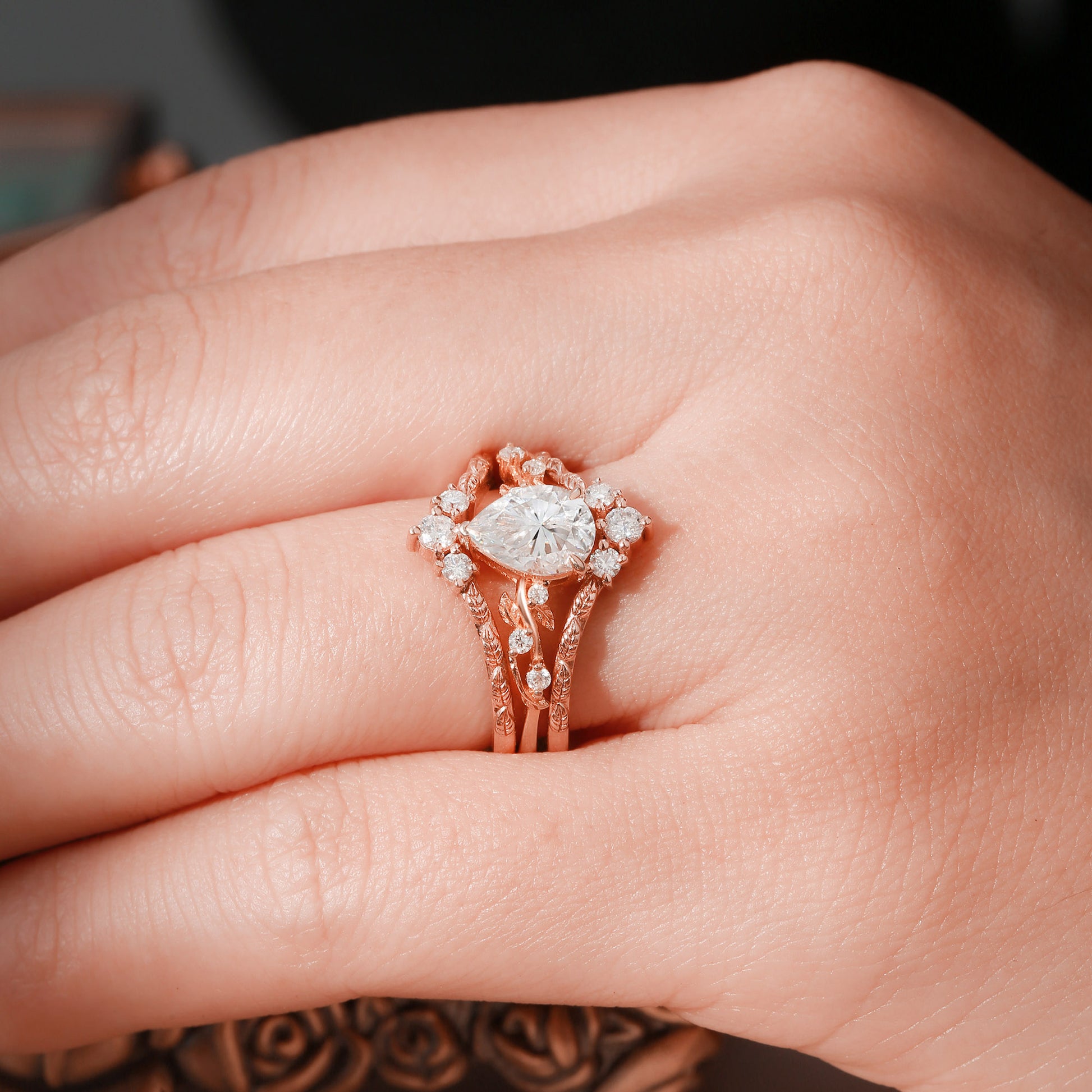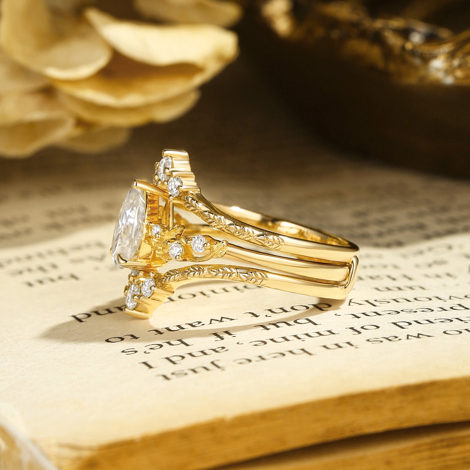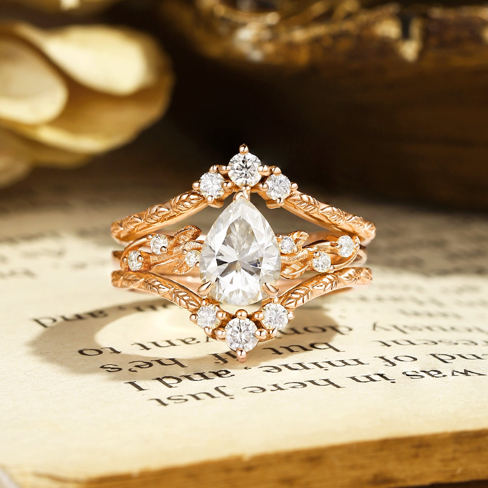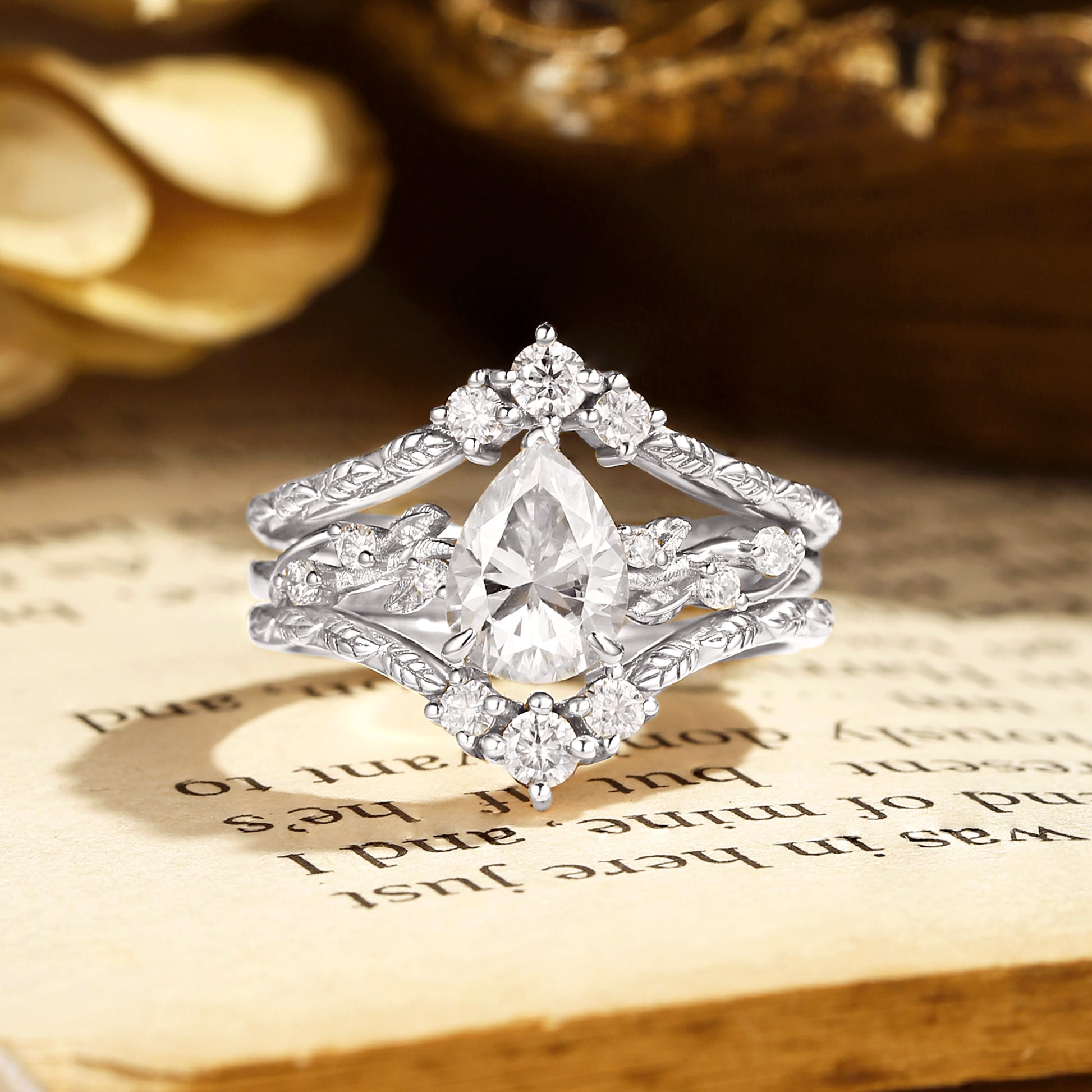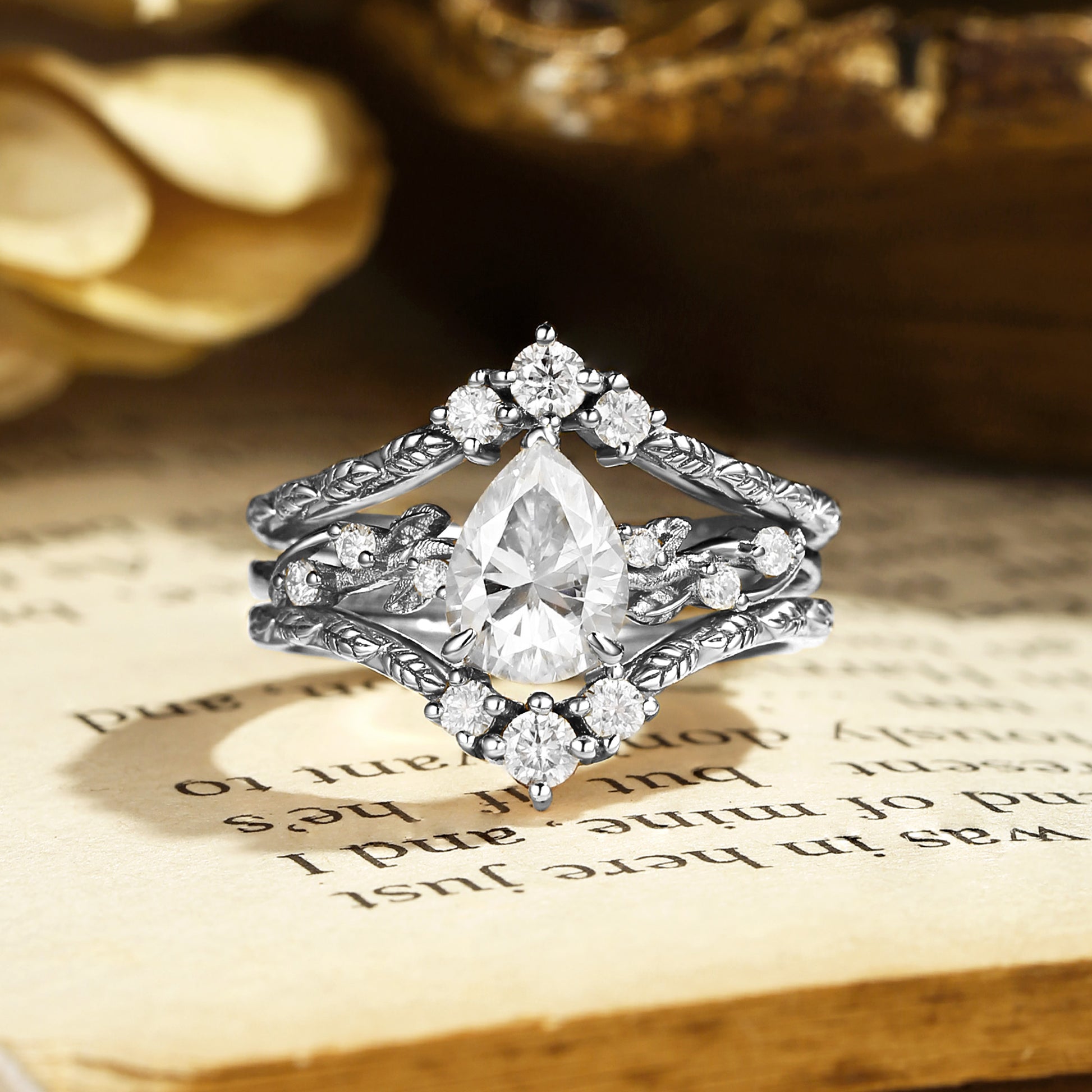 Harmonie - Pear Cut Moissanite Leafy Filigree Bridal Set 2pcs