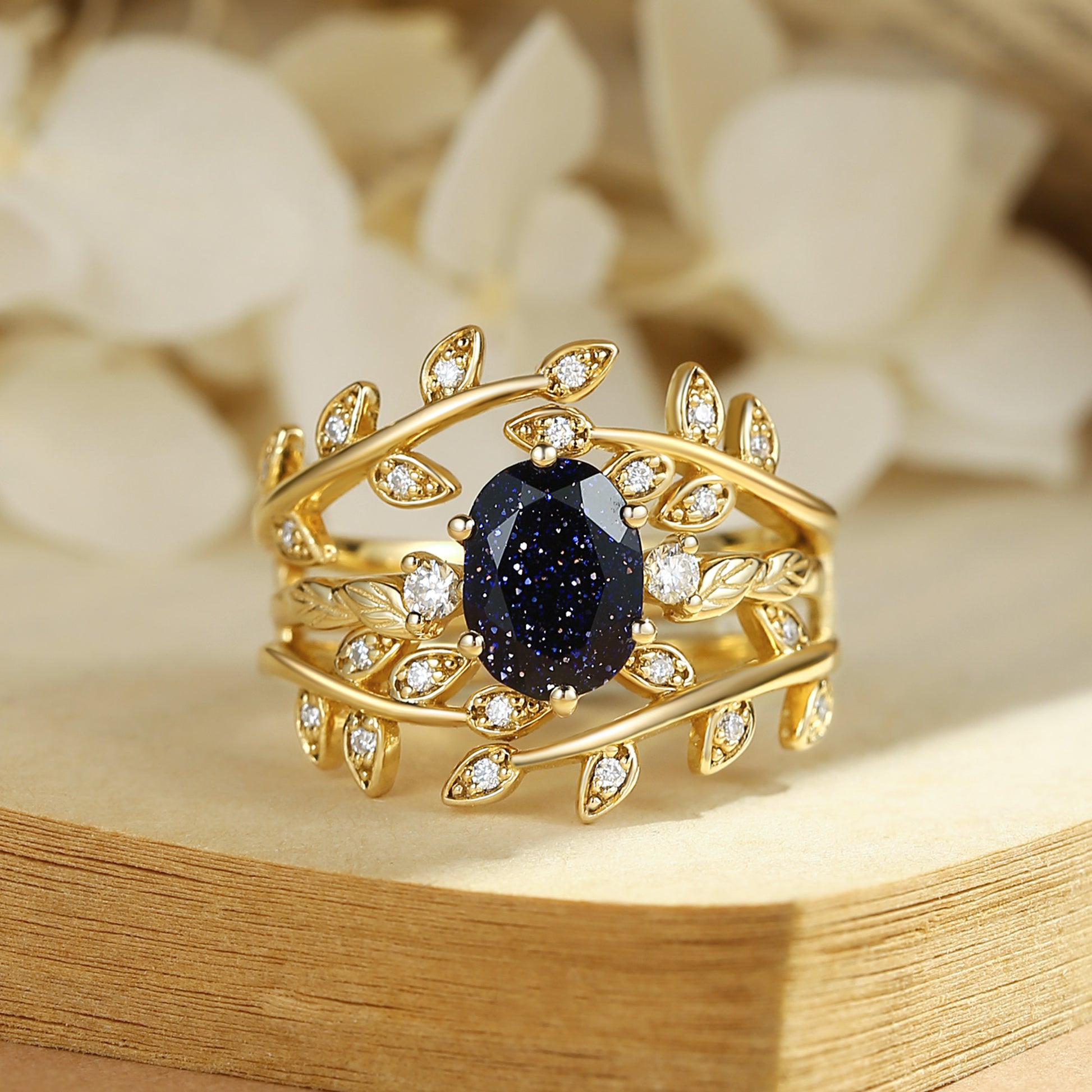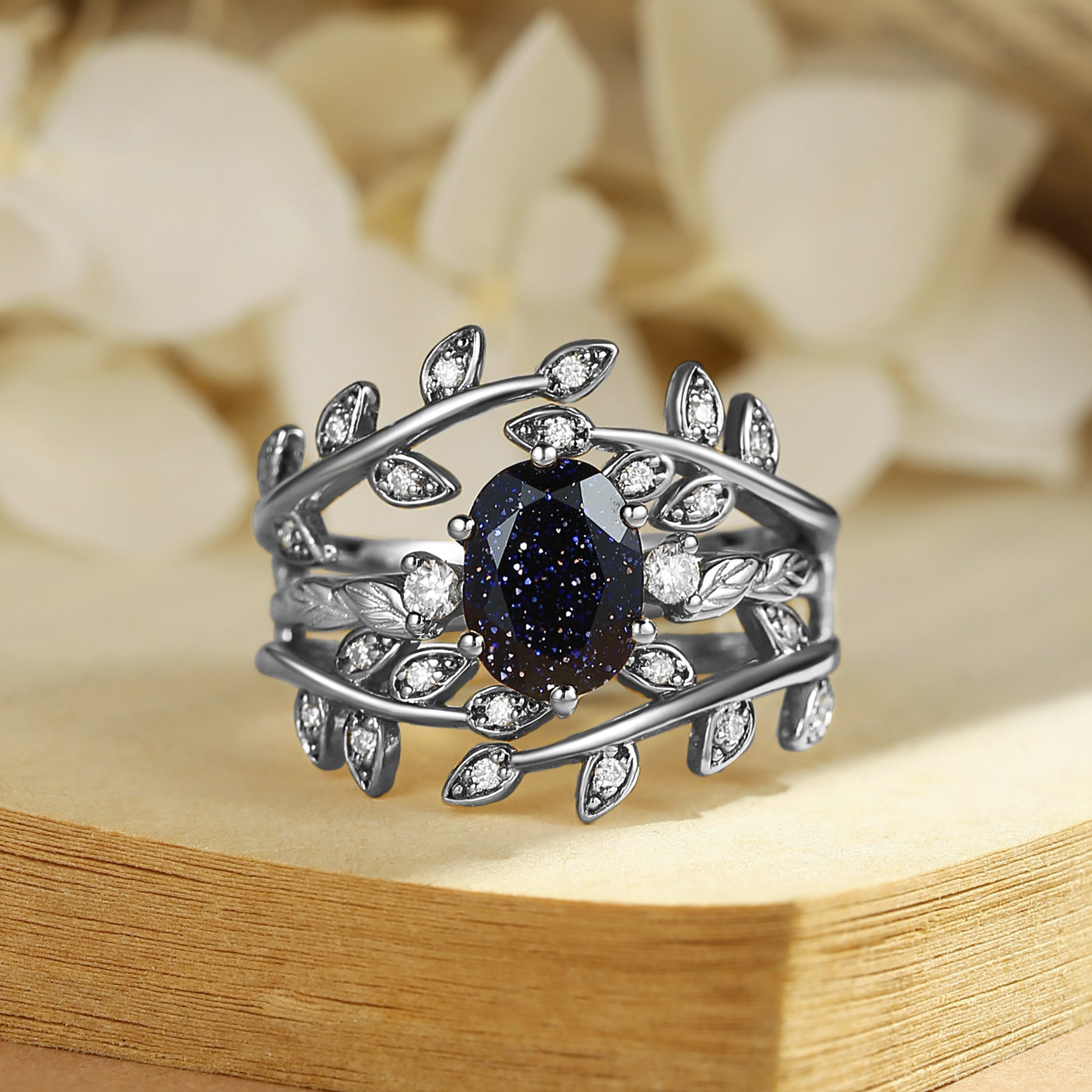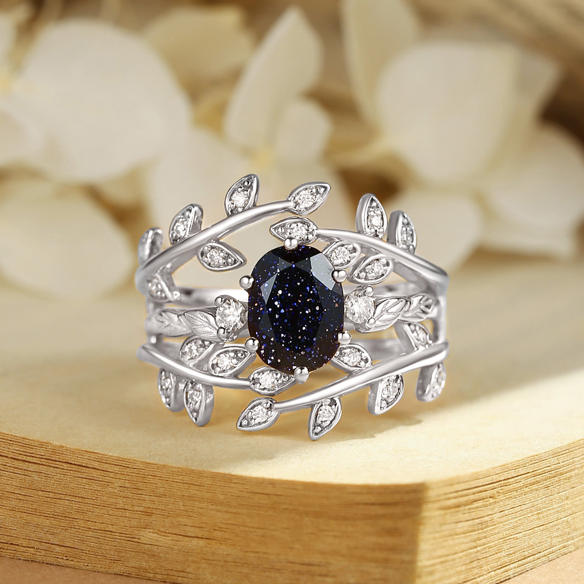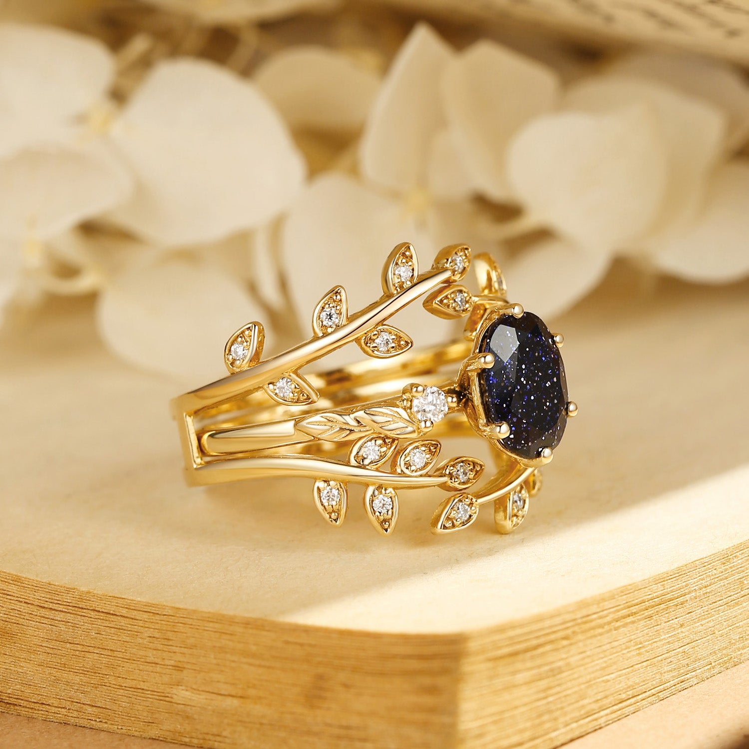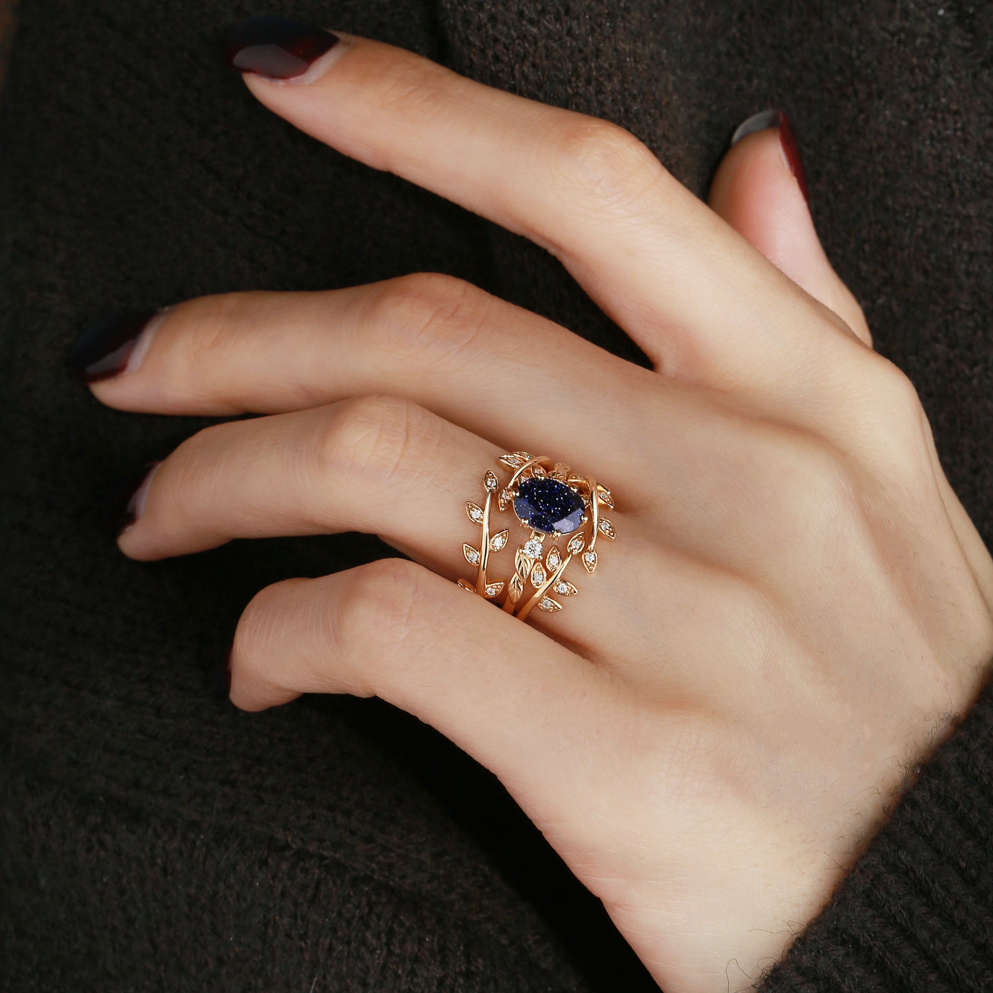 Hedwige - Blue Sandstone Leafy Branch Enhancer Ring Set 2pcs