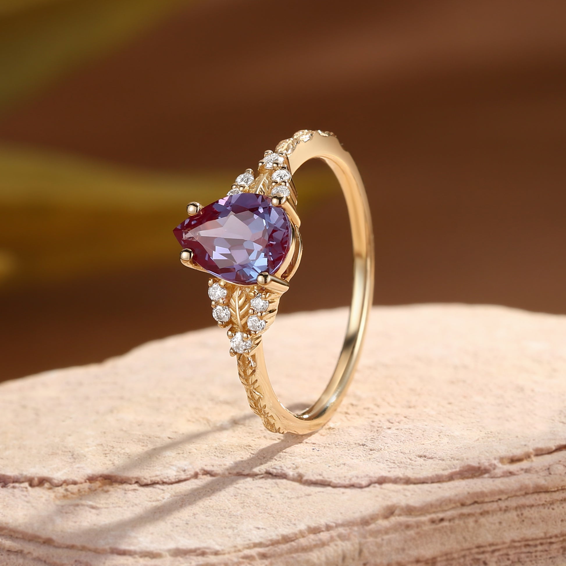 Hortense - Leaf Nature Inspired Pear Cut Lab Alexandrite Engagement Ring