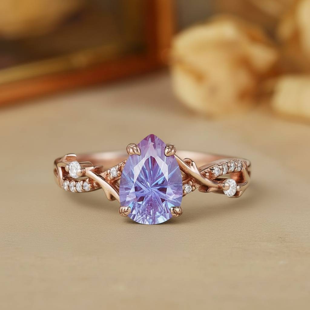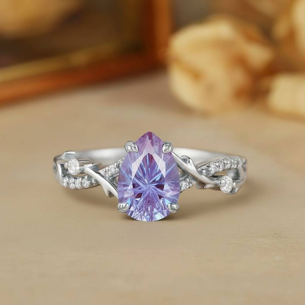 Liana - Twist Leaf Nature Inspired Pear Firework Cut Alexandrite Engagement Ring