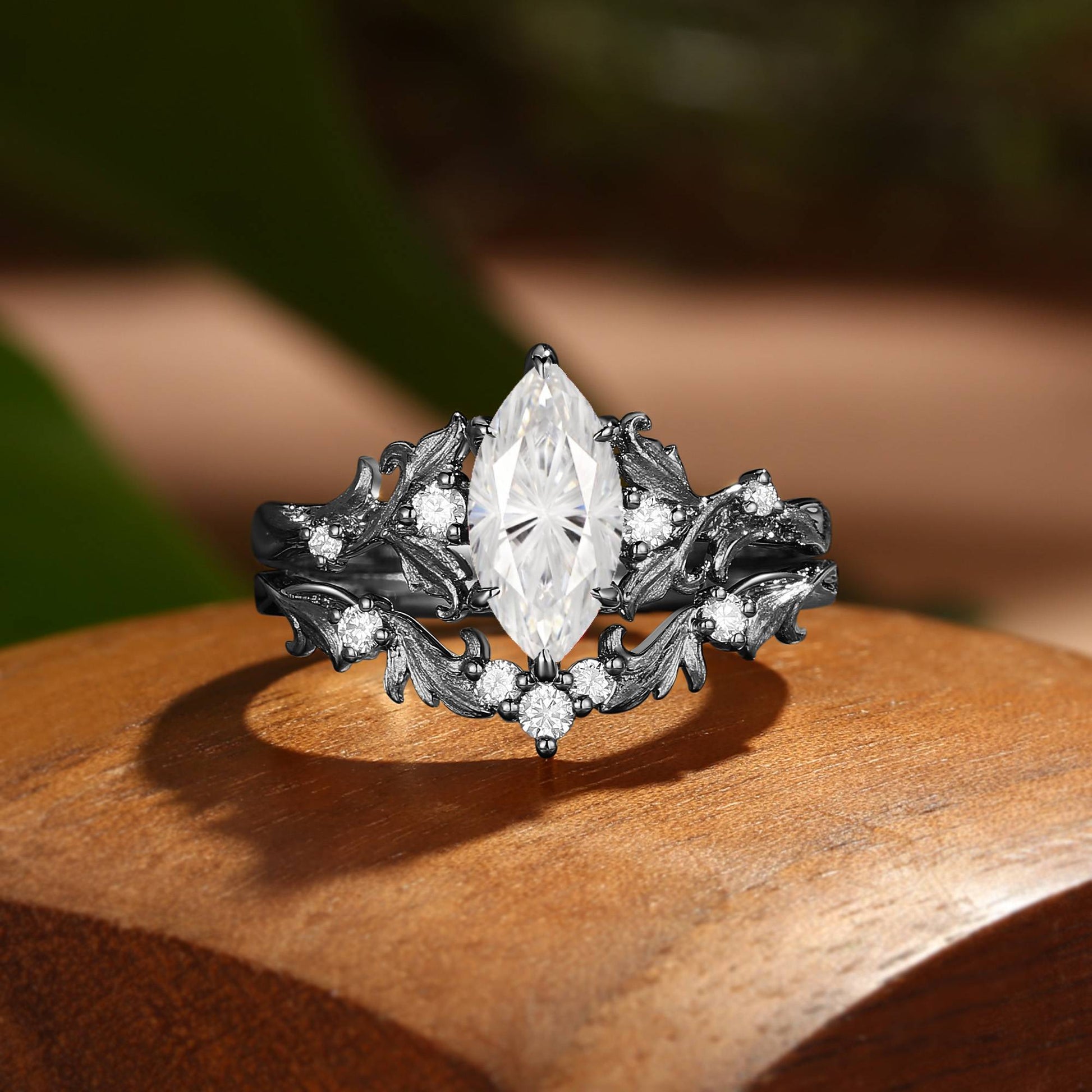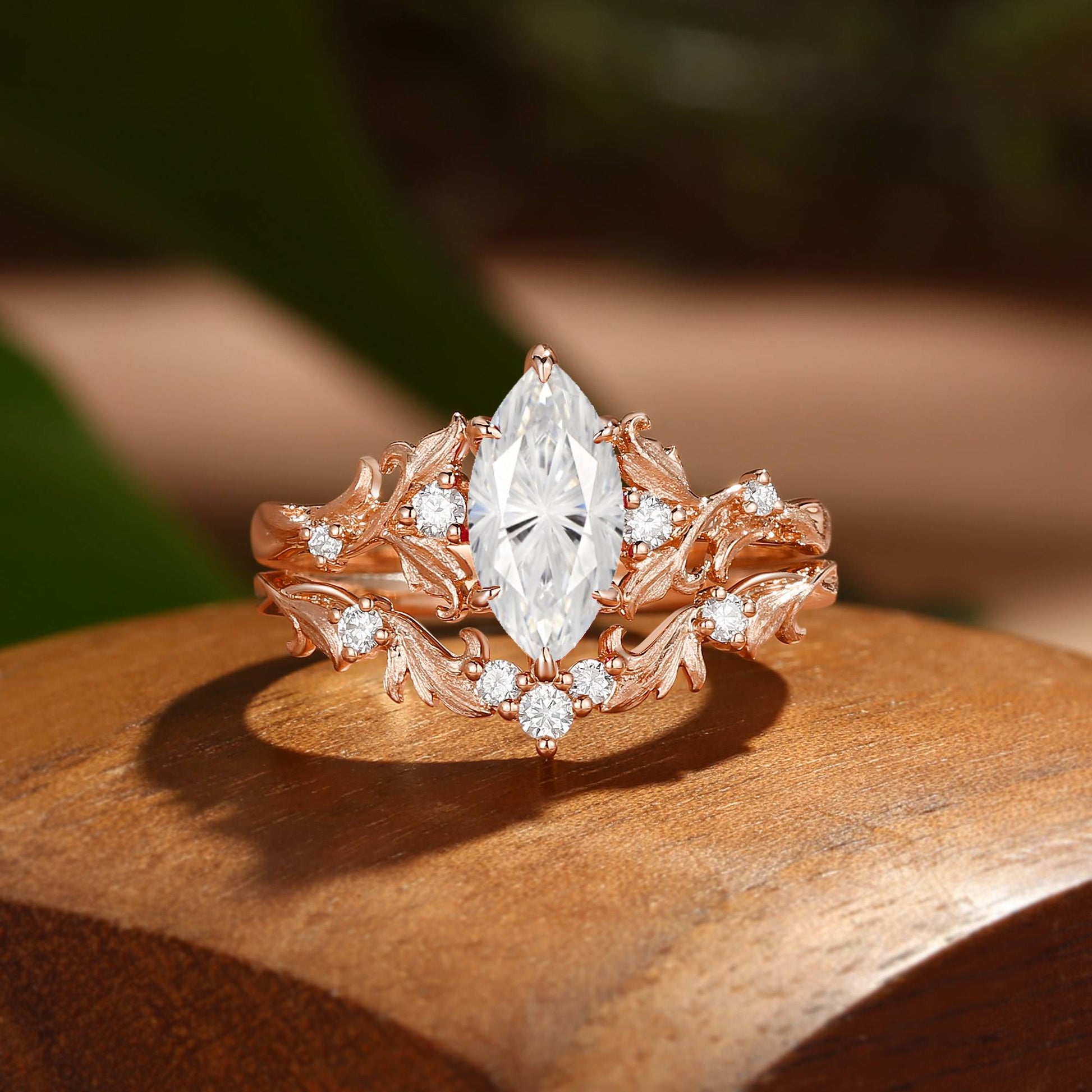 Rosa - Firework Marquise Cut Moissanite Acanthus Inspired Art Deco Bridal Set 2pcs