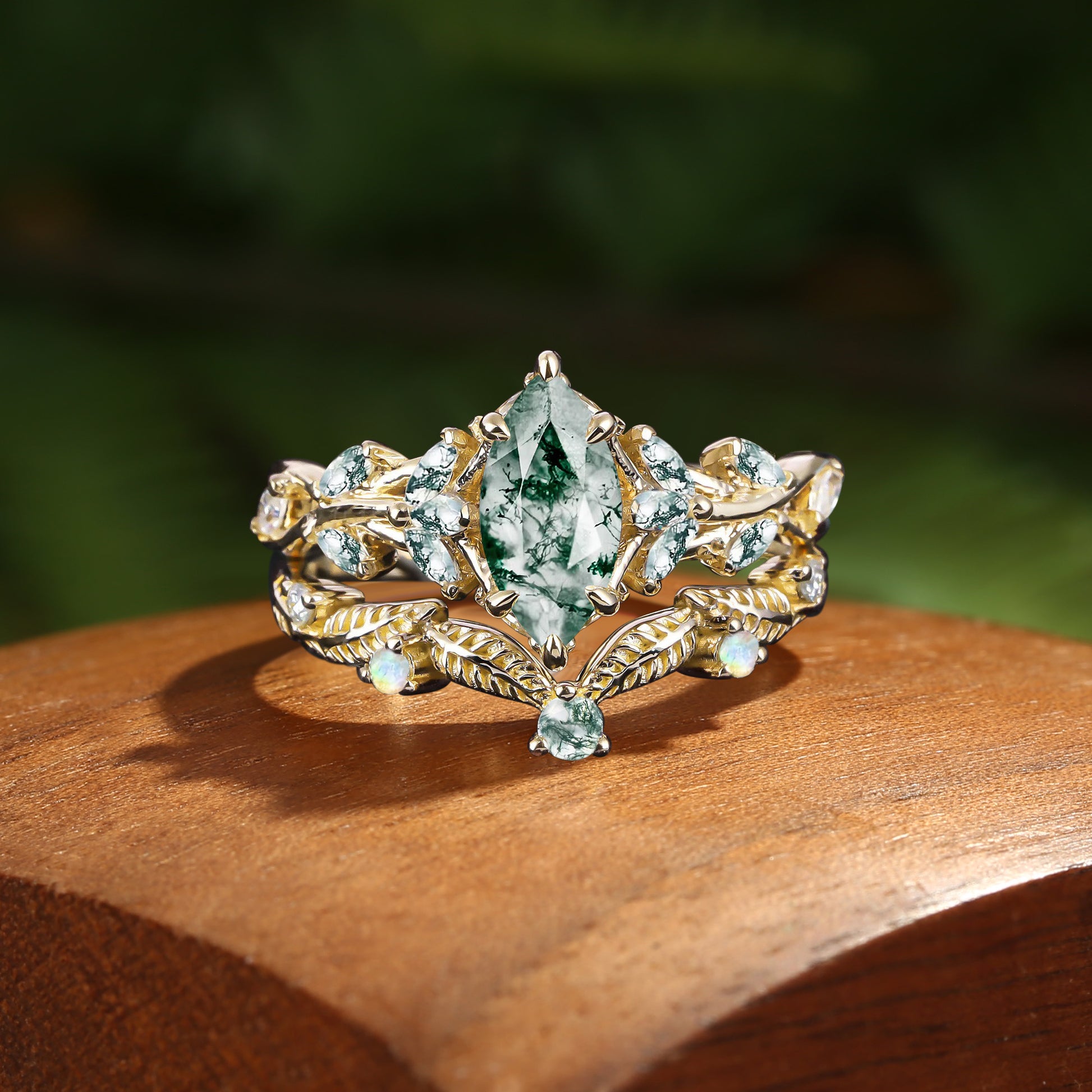Willow - Nature Inspired Marquise Moss Agate Lush Leafy Engagement Ring