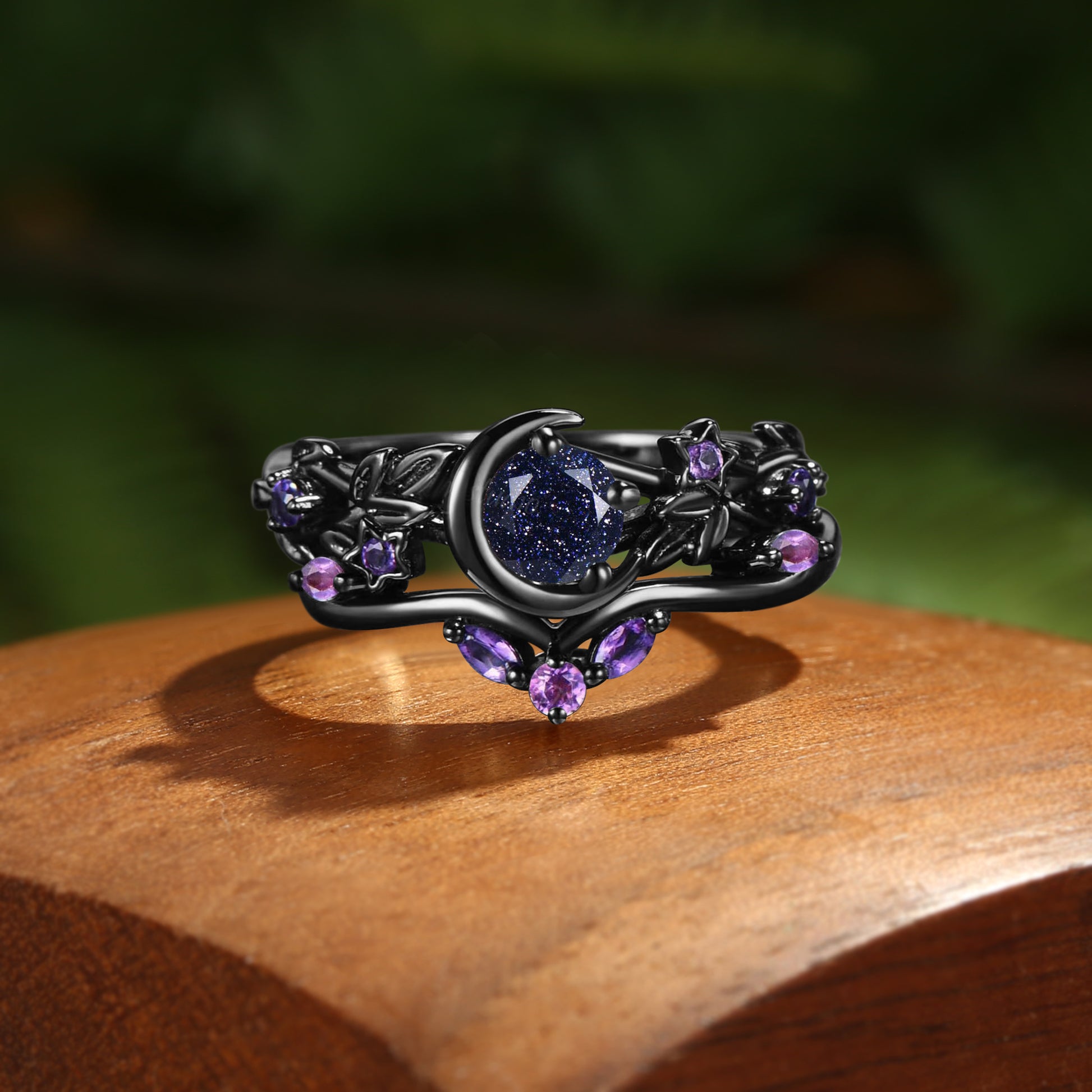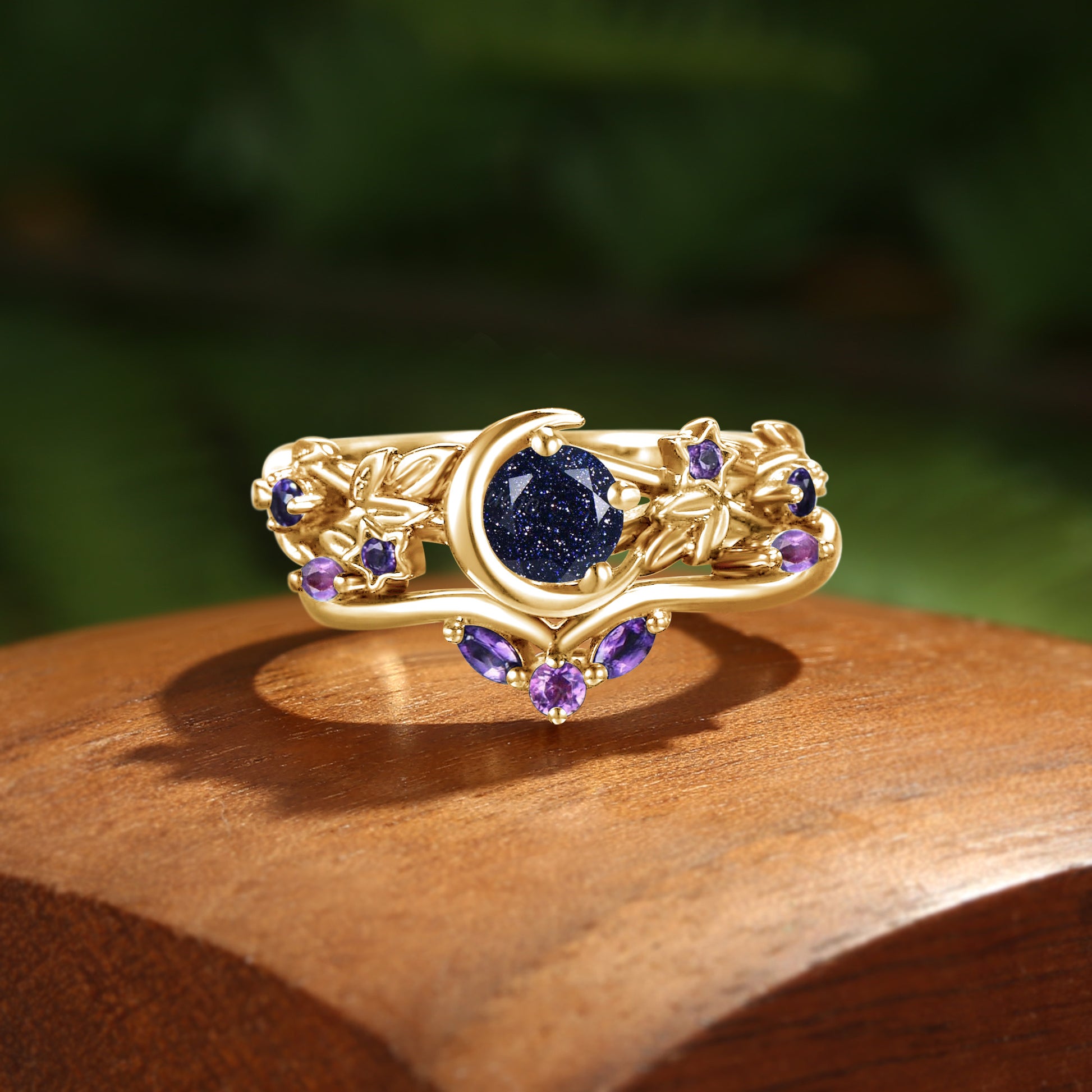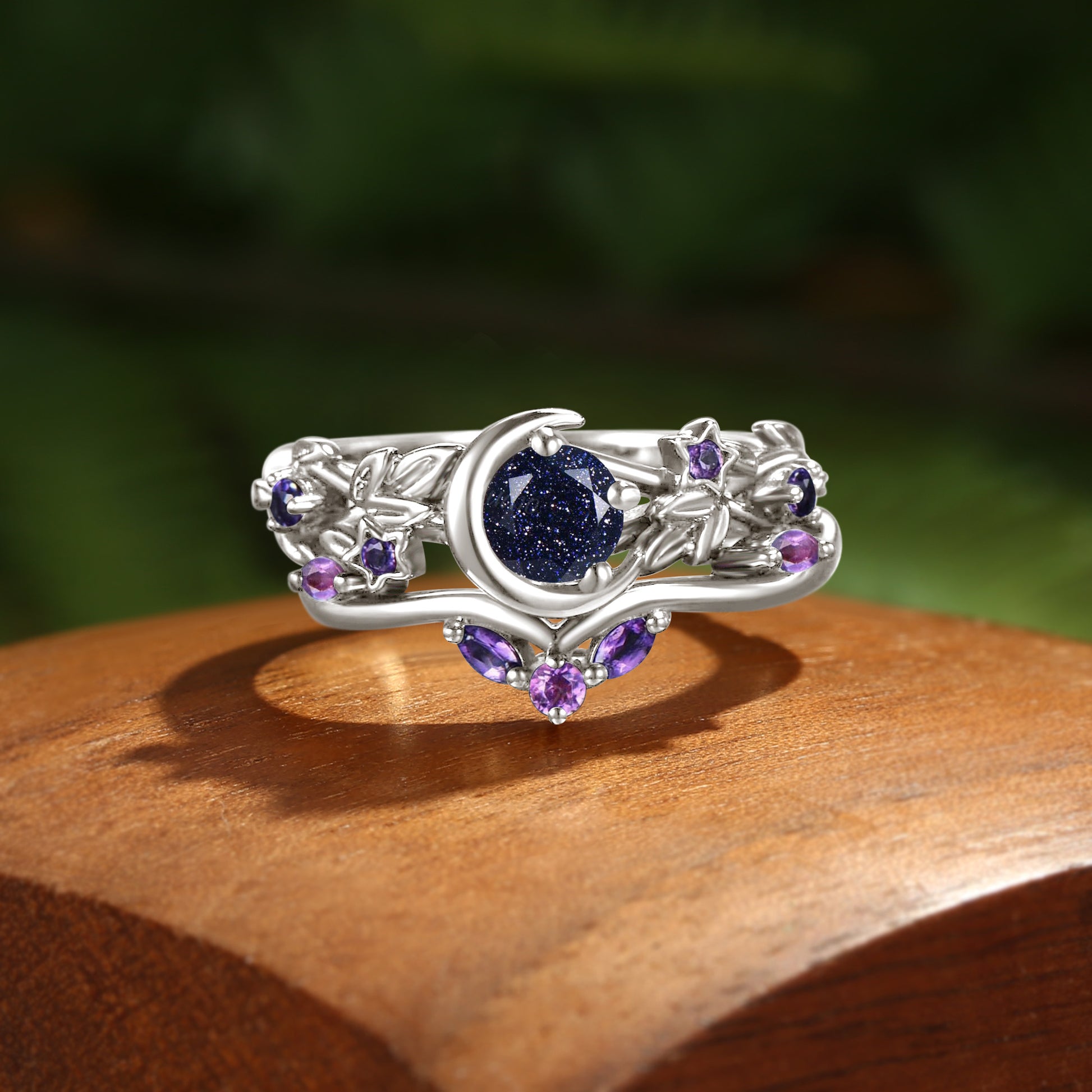 Ysolde - Moon & Star Galaxy Orion Nebula Blue Sandstone Leaf Inspired Bridal Set 2pcs
