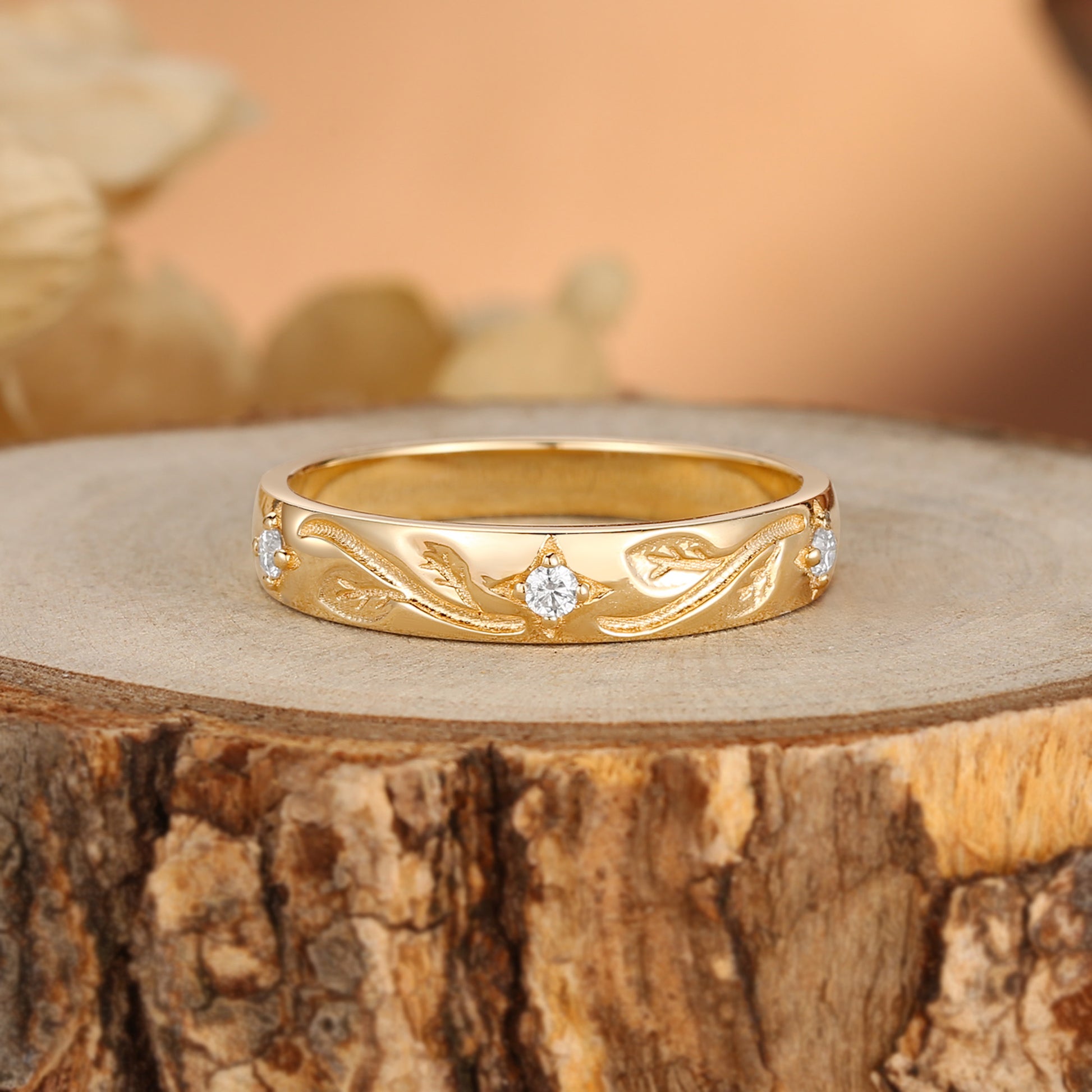 5MM Moissanite Leafy Engraved Promise Gold Men Rings