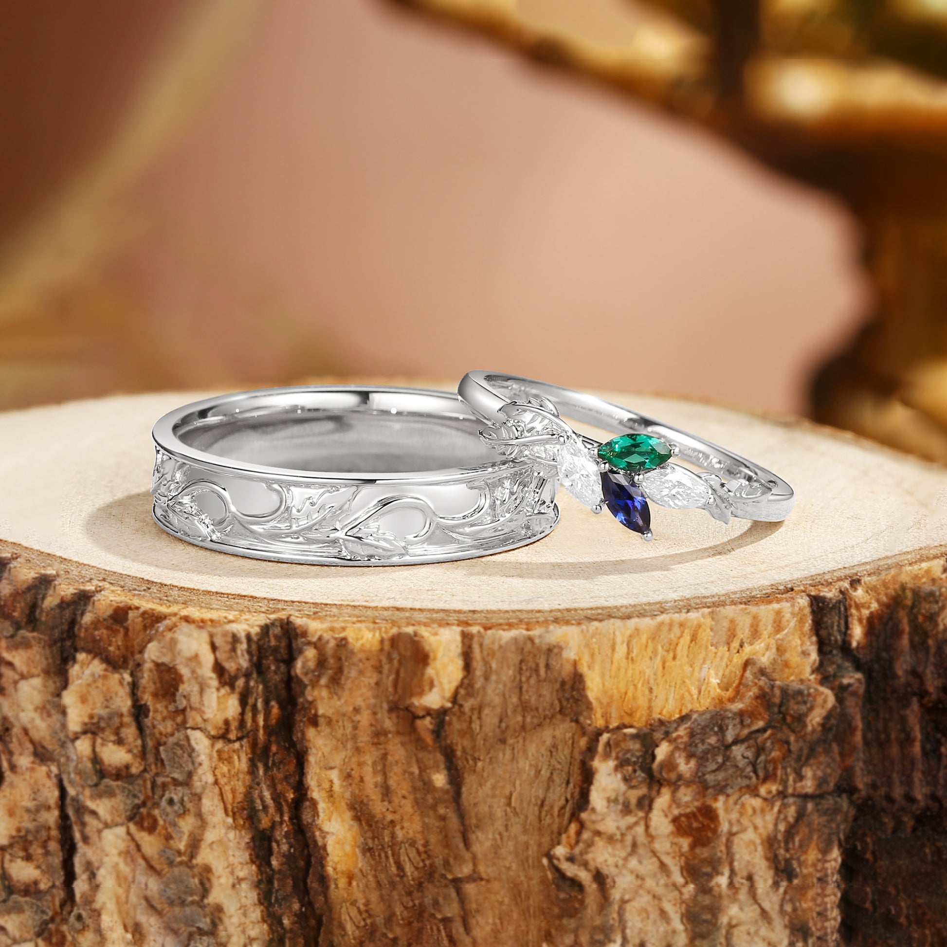 Abella - Sapphire & Emerald Promise Couple Matching Wedding Bands