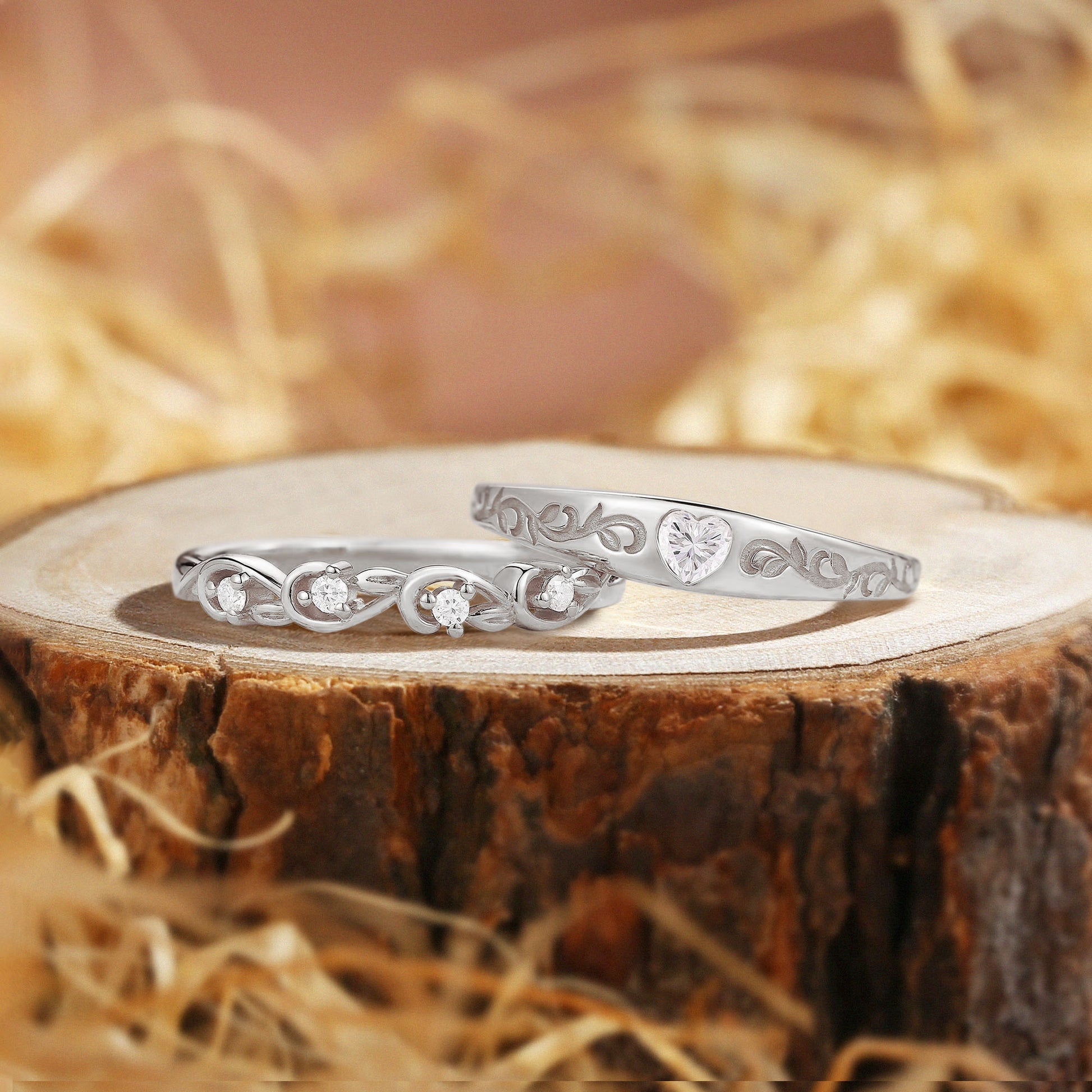 Couple Rings - Unique Heart Cut Moissanite Wedding Band Rings Set