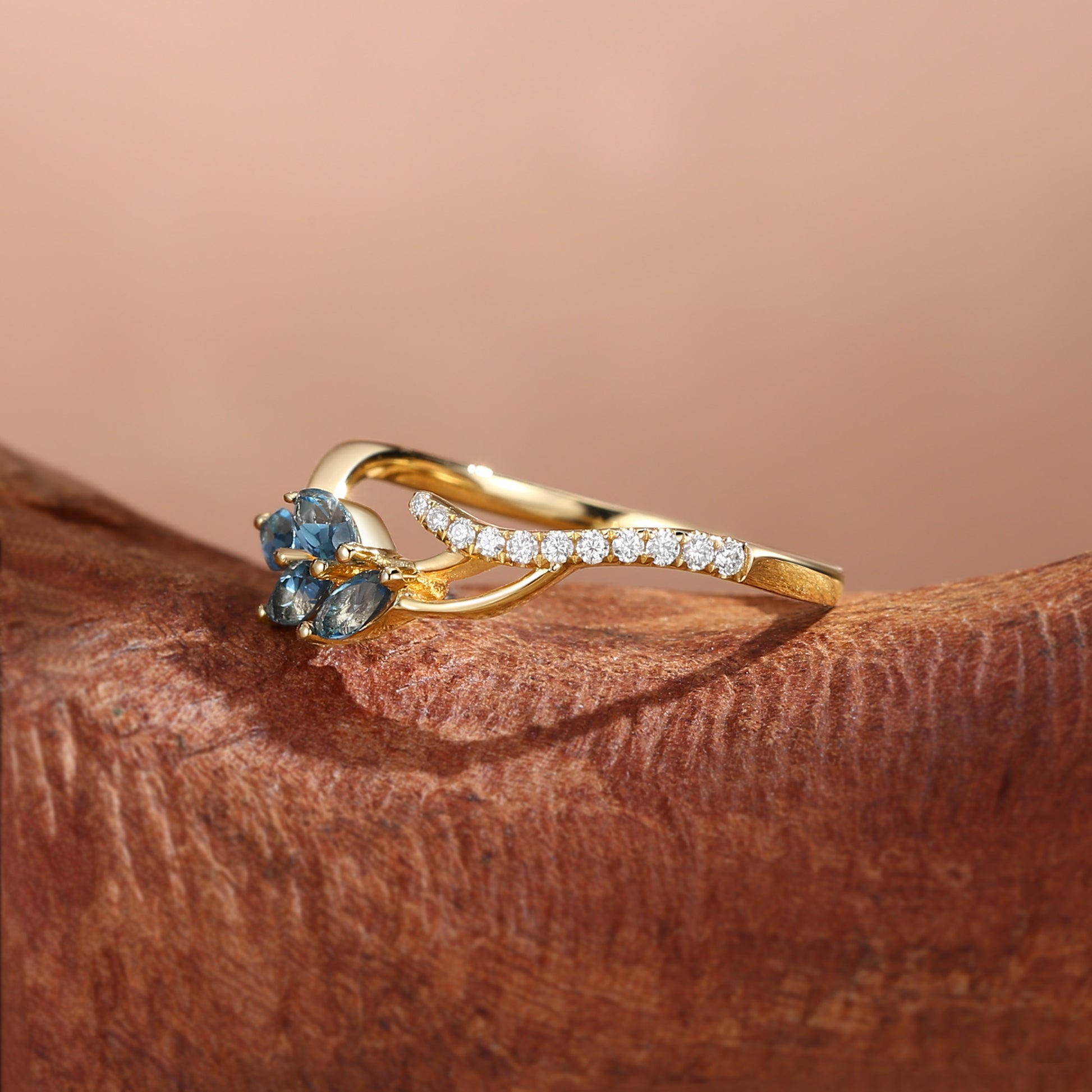 Cluster Curved London Blue Topaz Marquise Wedding Band