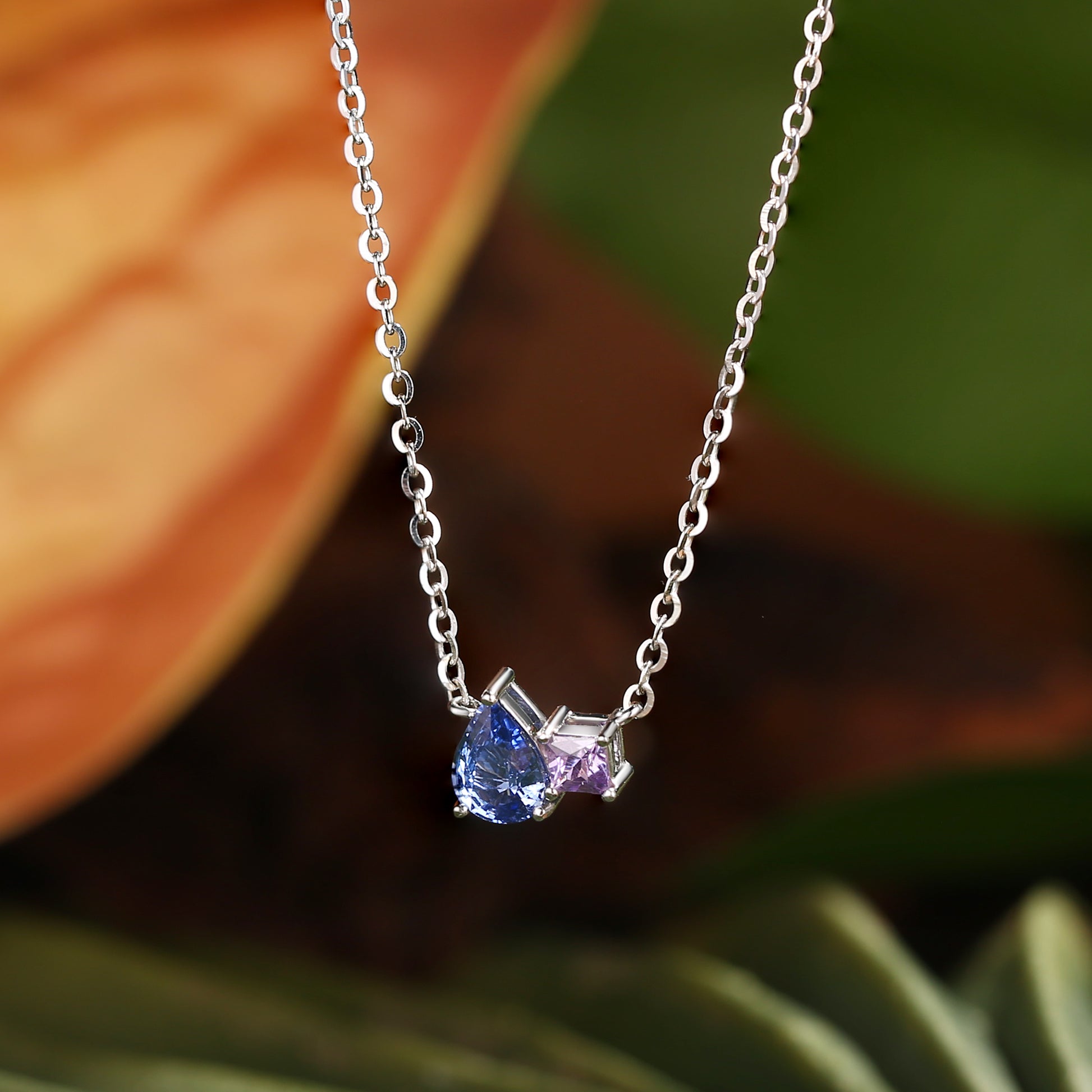 Monet's Garden-Inspired Lab Sapphire Blue & Pink Pendant