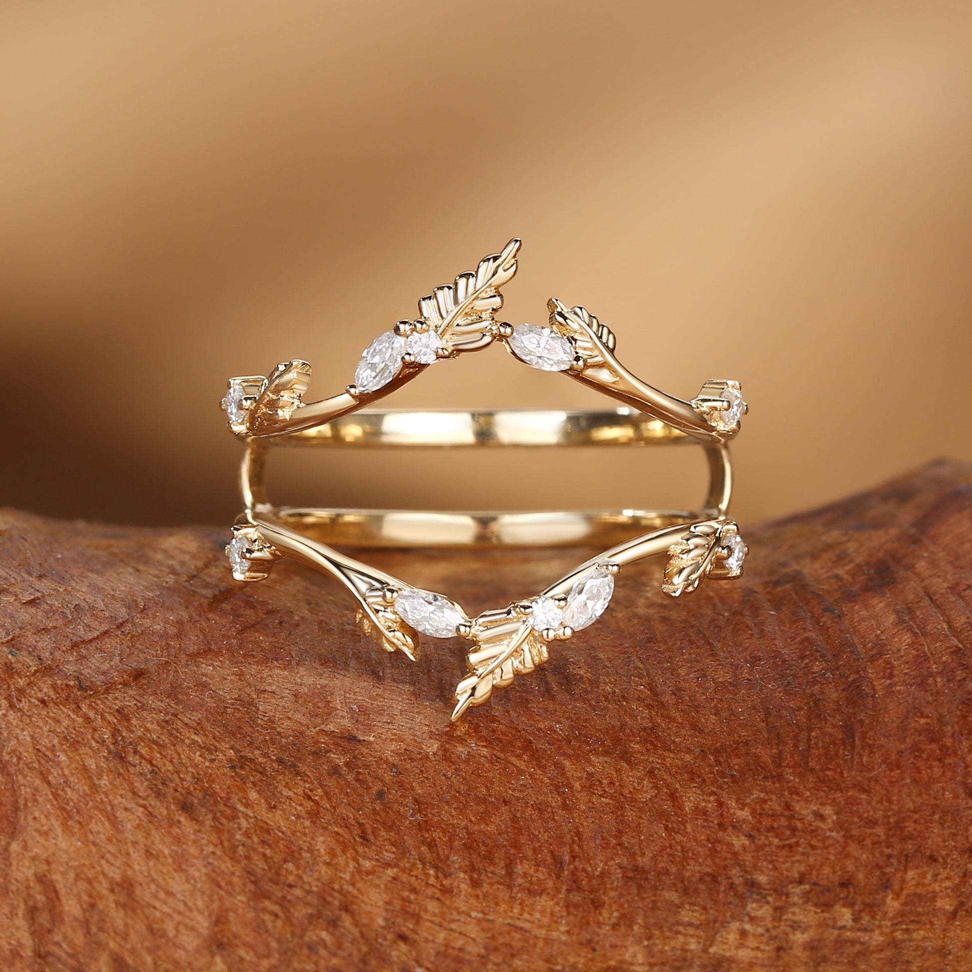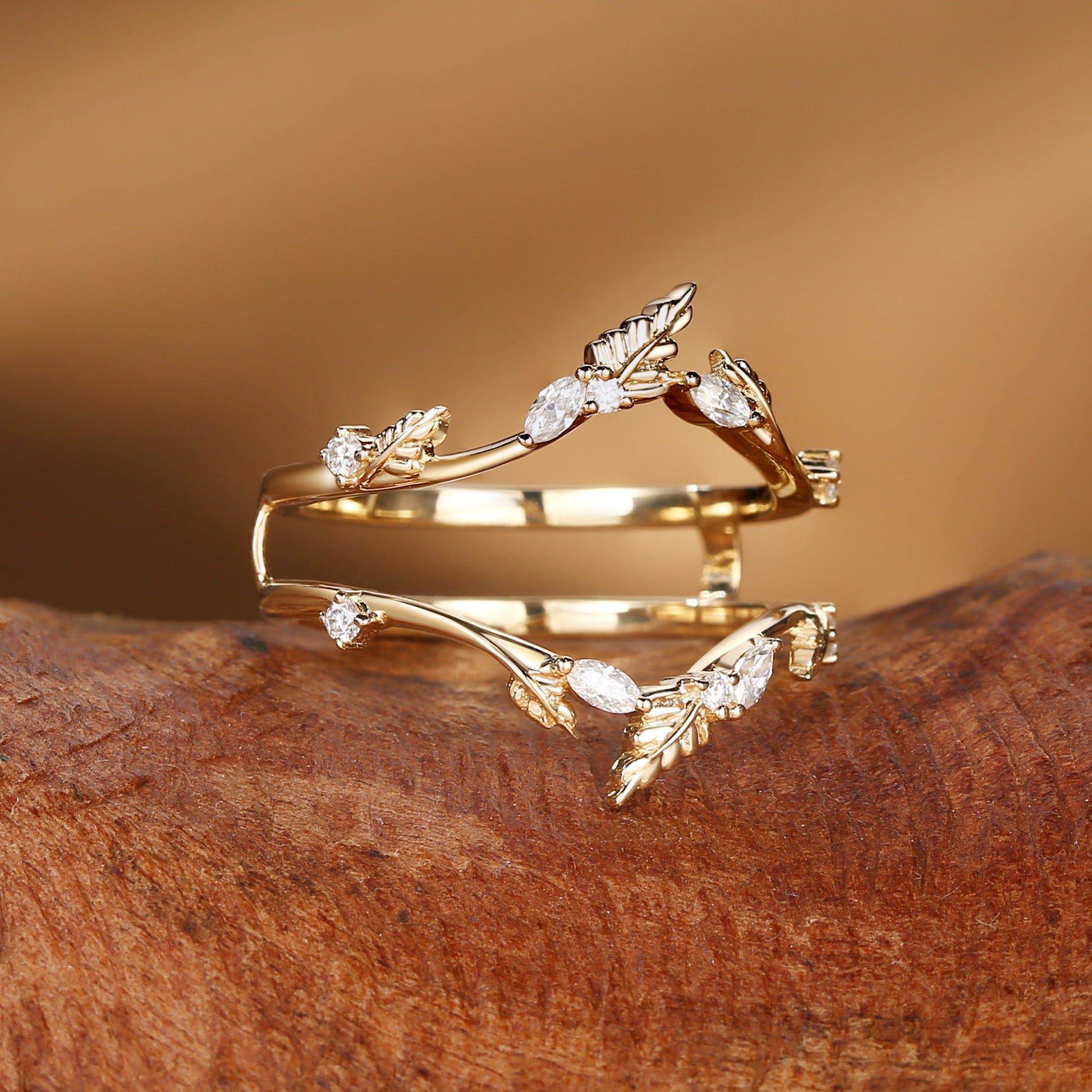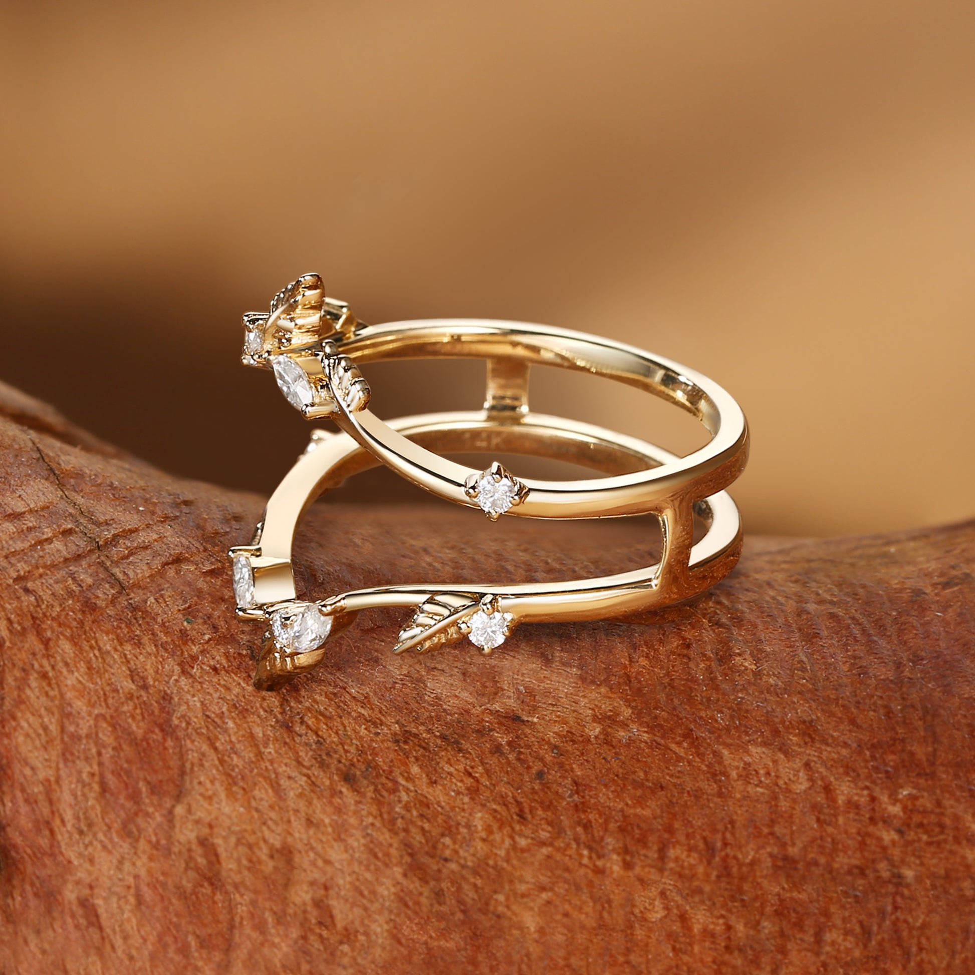Wrap your finger in whimsy with the Quilina enhancer band! This nature-inspired wedding accessory adds a touch of enchanted forest magic to your bridal set. Like a secret garden for your ring finger, its organic design celebrates your unique love story with a playful twist on traditional wedding jewelry.