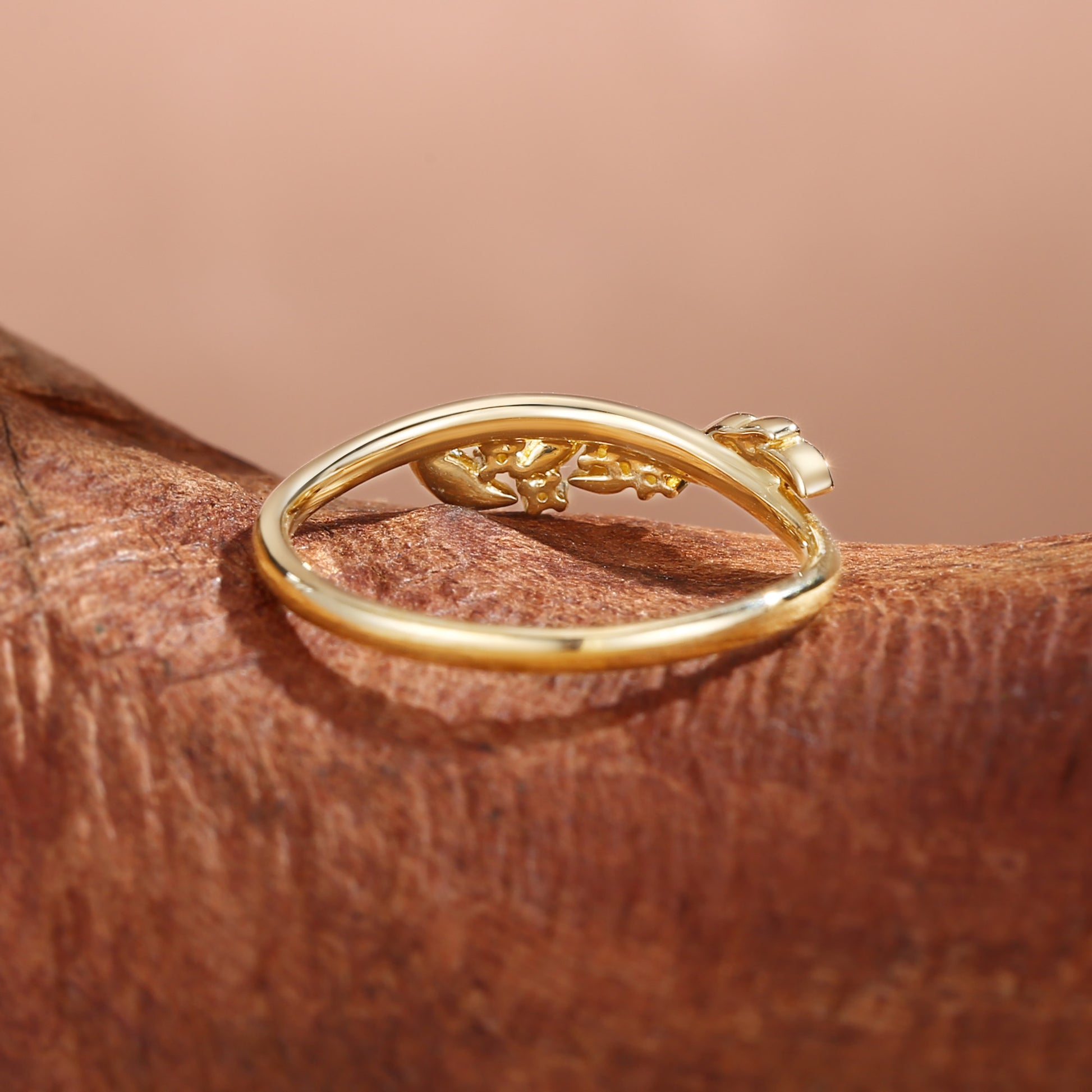 Celebrate your love with this Unique Leaf Inspired Curved Moissanite Wedding Band. Crafted to mimic the delicate curves of a leaf, this band features sparkling moissanite stones that offer exceptional brilliance and durability. Its elegant design complements any engagement ring, making it a perfect symbol of your commitment and natural beauty. Comfortable to wear daily, this wedding band blends timeless style with a touch of nature’s grace.