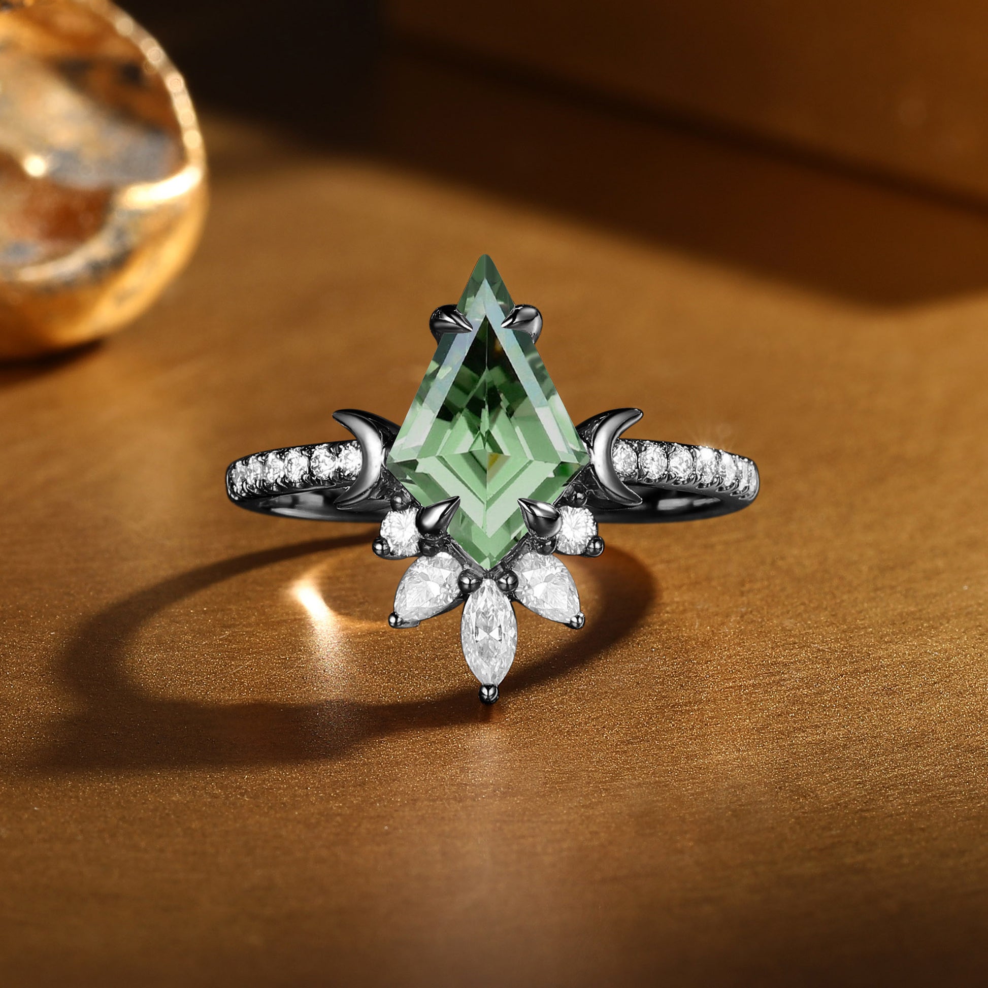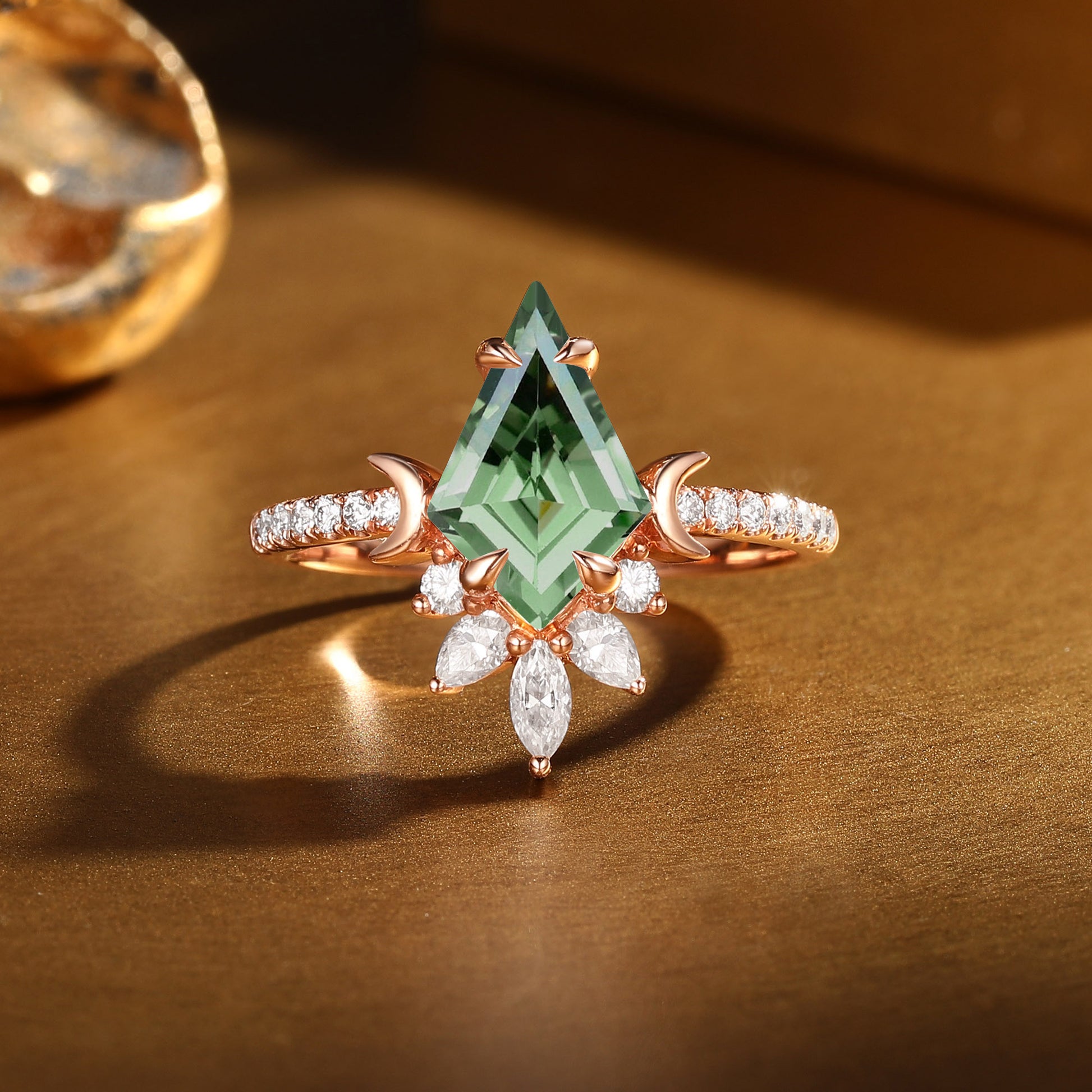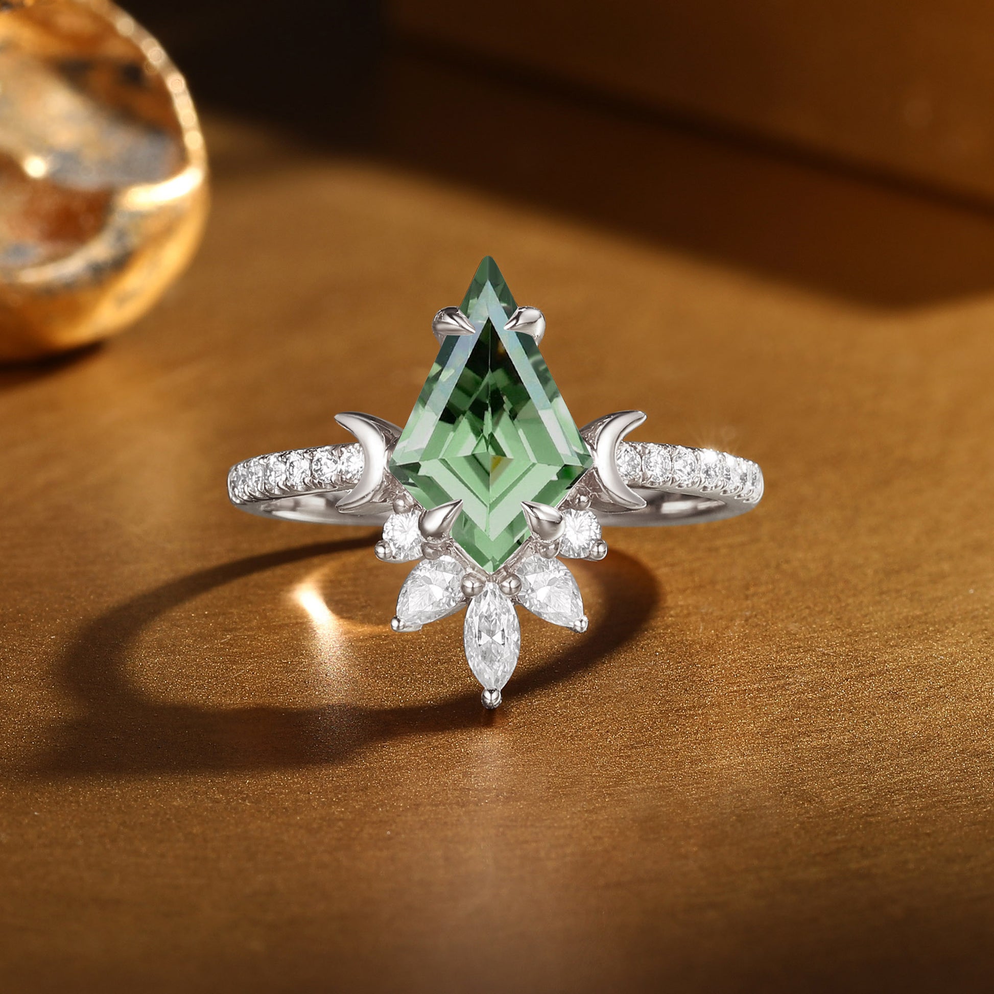 Vintage Kite Cut Green Sapphire Moon Inspired Engagement Ring - Lune