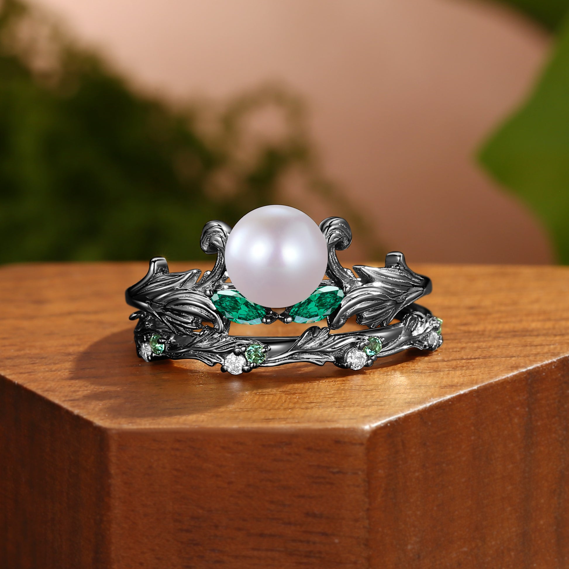 - Accent Stones: Moissanites/Emerald, D clarity, VS-VVS color, 0.35ct total weight.