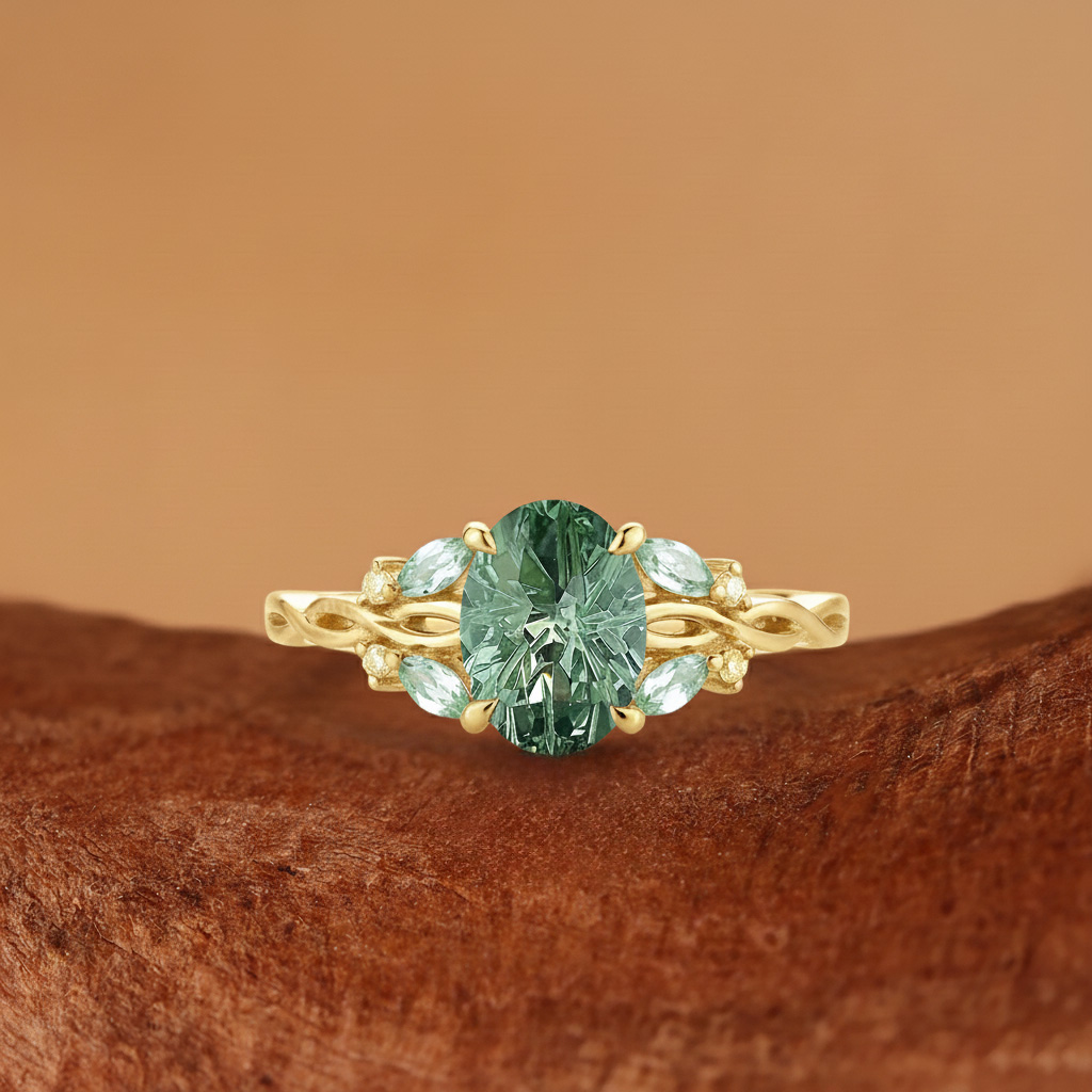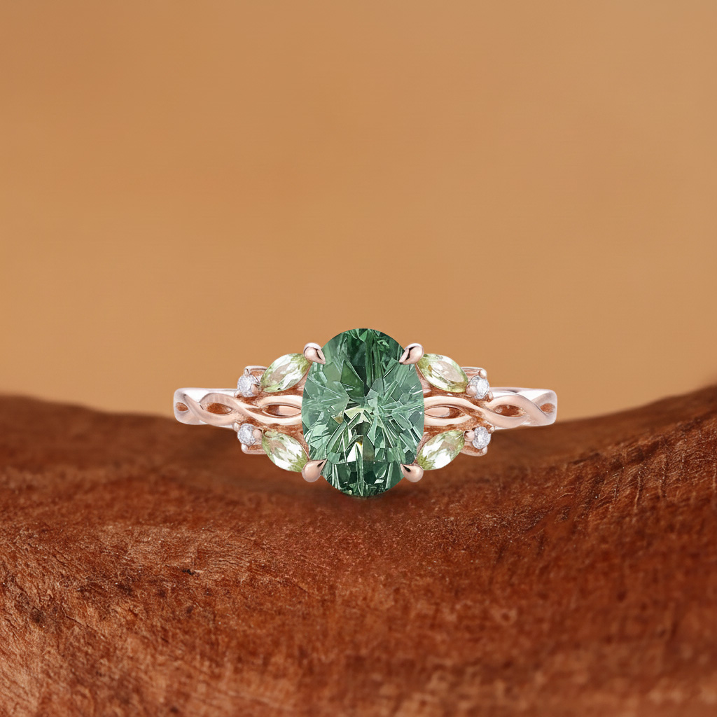 Olea - Oval Firework Cut Green Sapphire Twist Engagement Ring