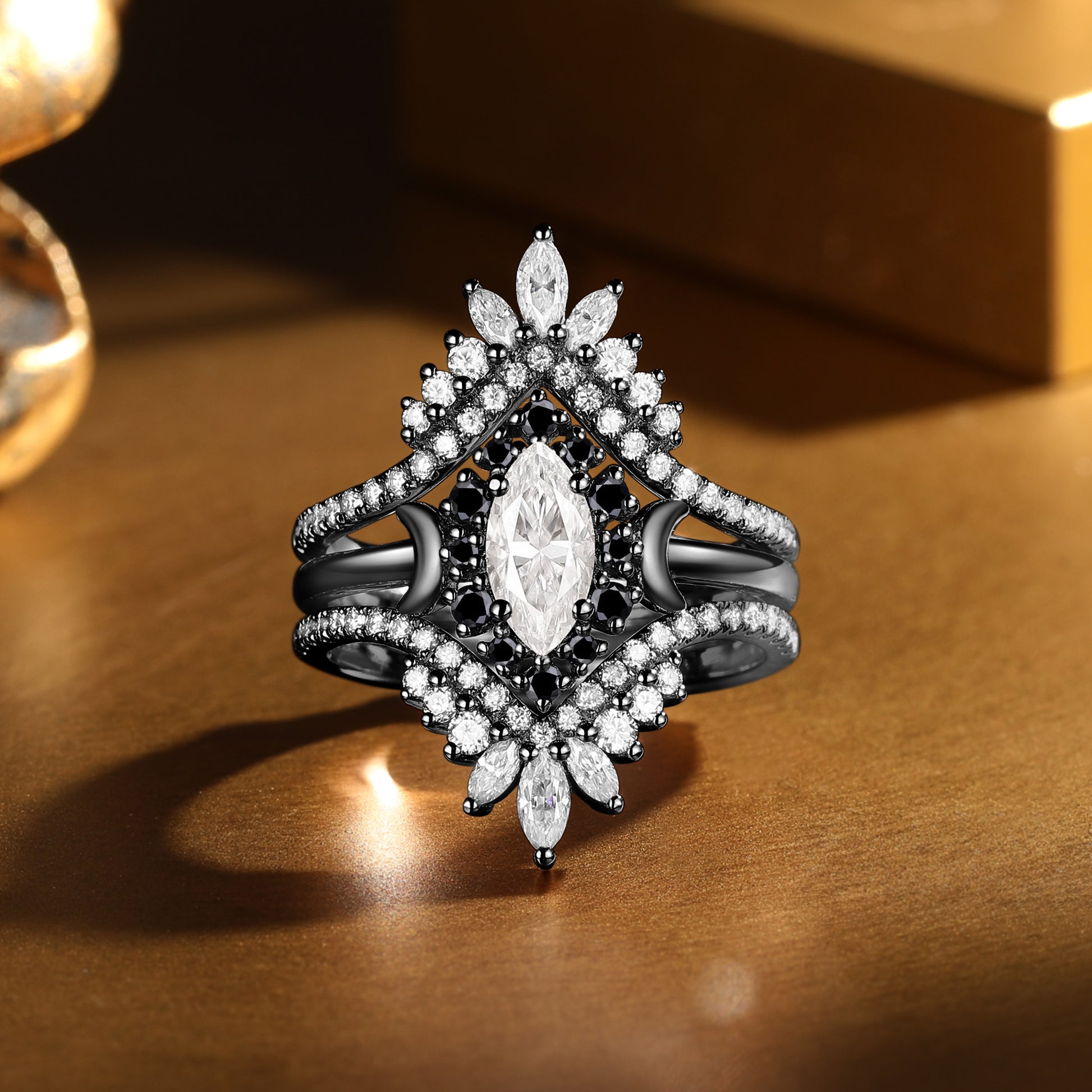 Marquise Cut Moissanite Victorian Moon Inspired Enhancer Bridal Set 2pcs - Eloise
