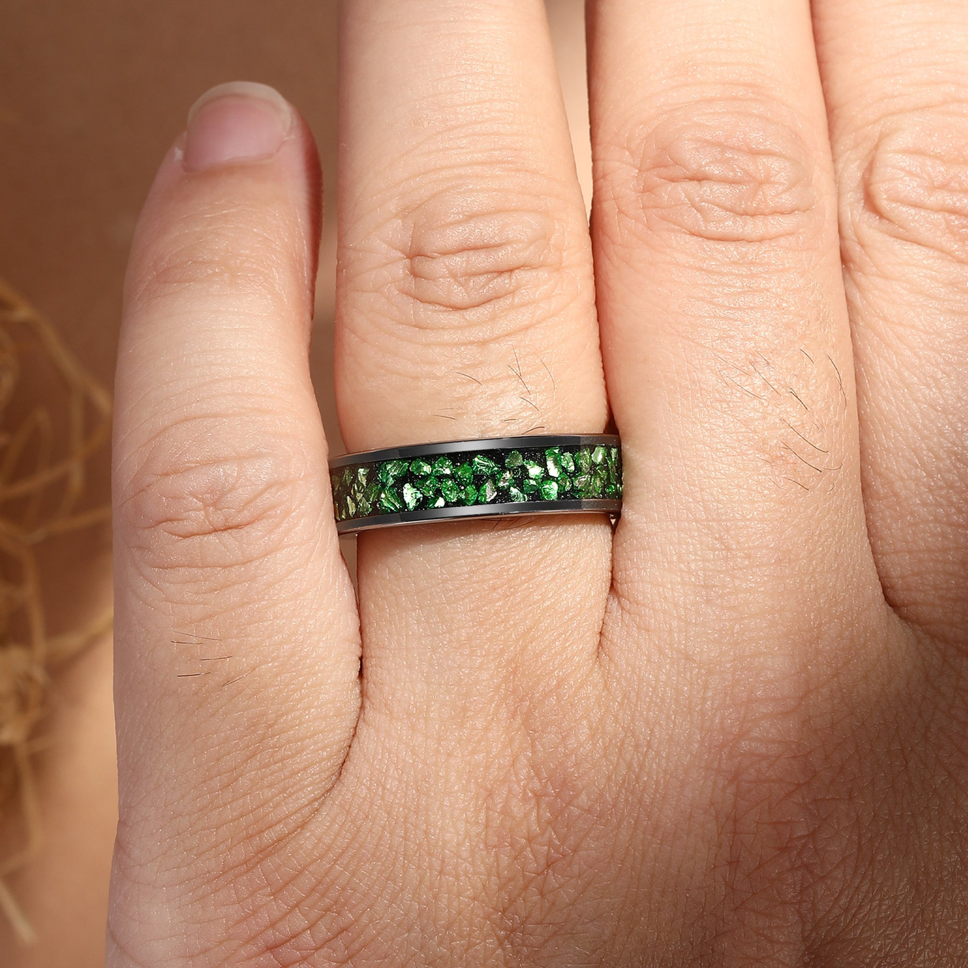 Unique Black Inlay Green Forest Elf Men Wedding Band