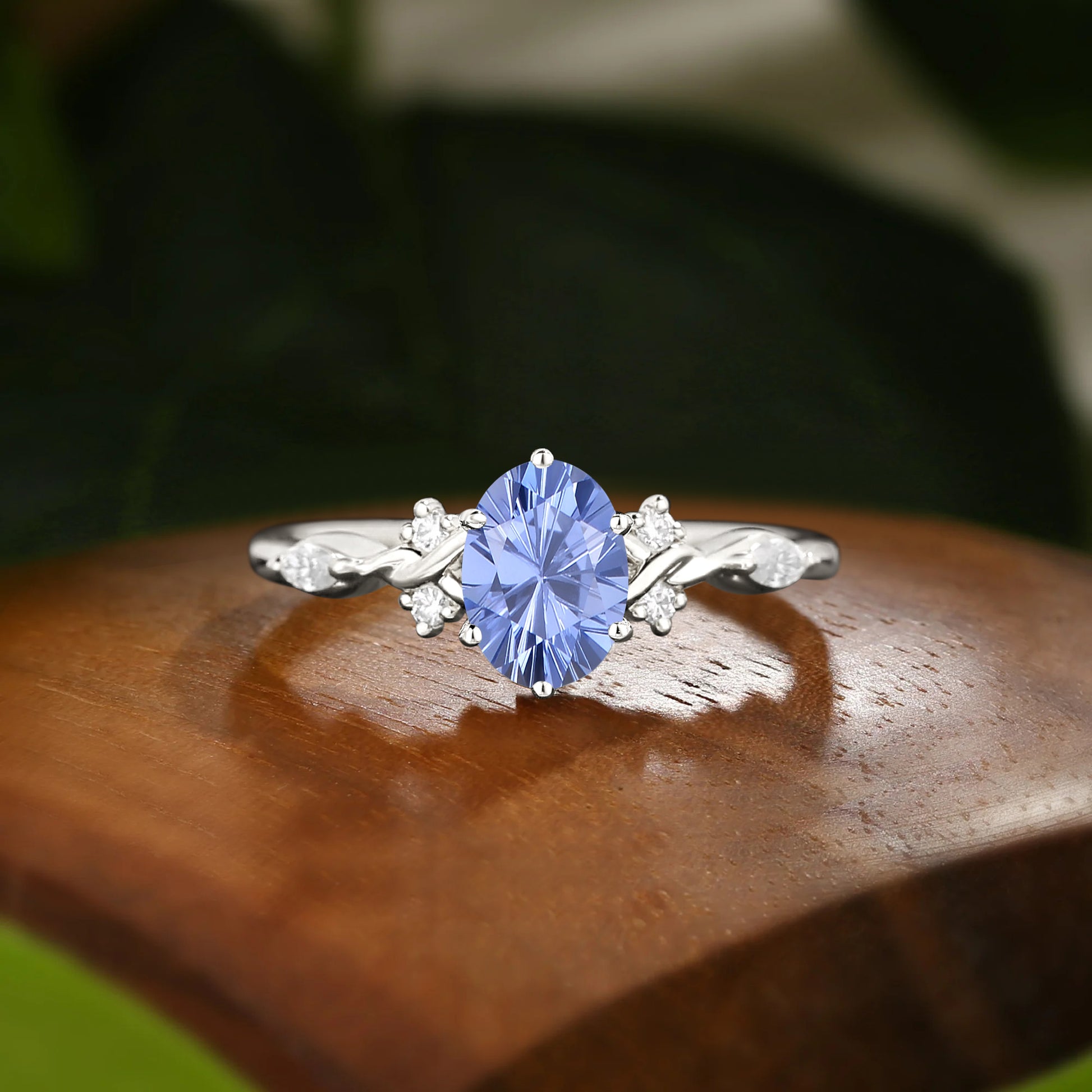 Oval Firework Cut Cornflower Blue Sapphire Twist Engagement Ring - Lucille