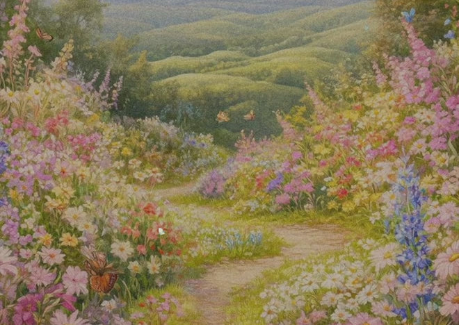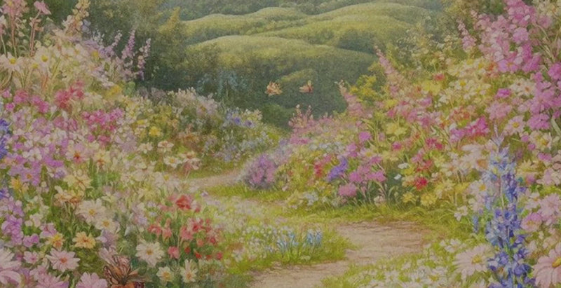 You're in an 18th-century palace garden. Sunlight filters through the vines, casting dappled light on your fingers—where jewels shimmer in soft blush and rose hues. Petals bloom in delicate layers, and butterflies seem to flutter at your touch. With every graceful movement, you stir the breeze itself, wrapping yourself in the romance of summer…