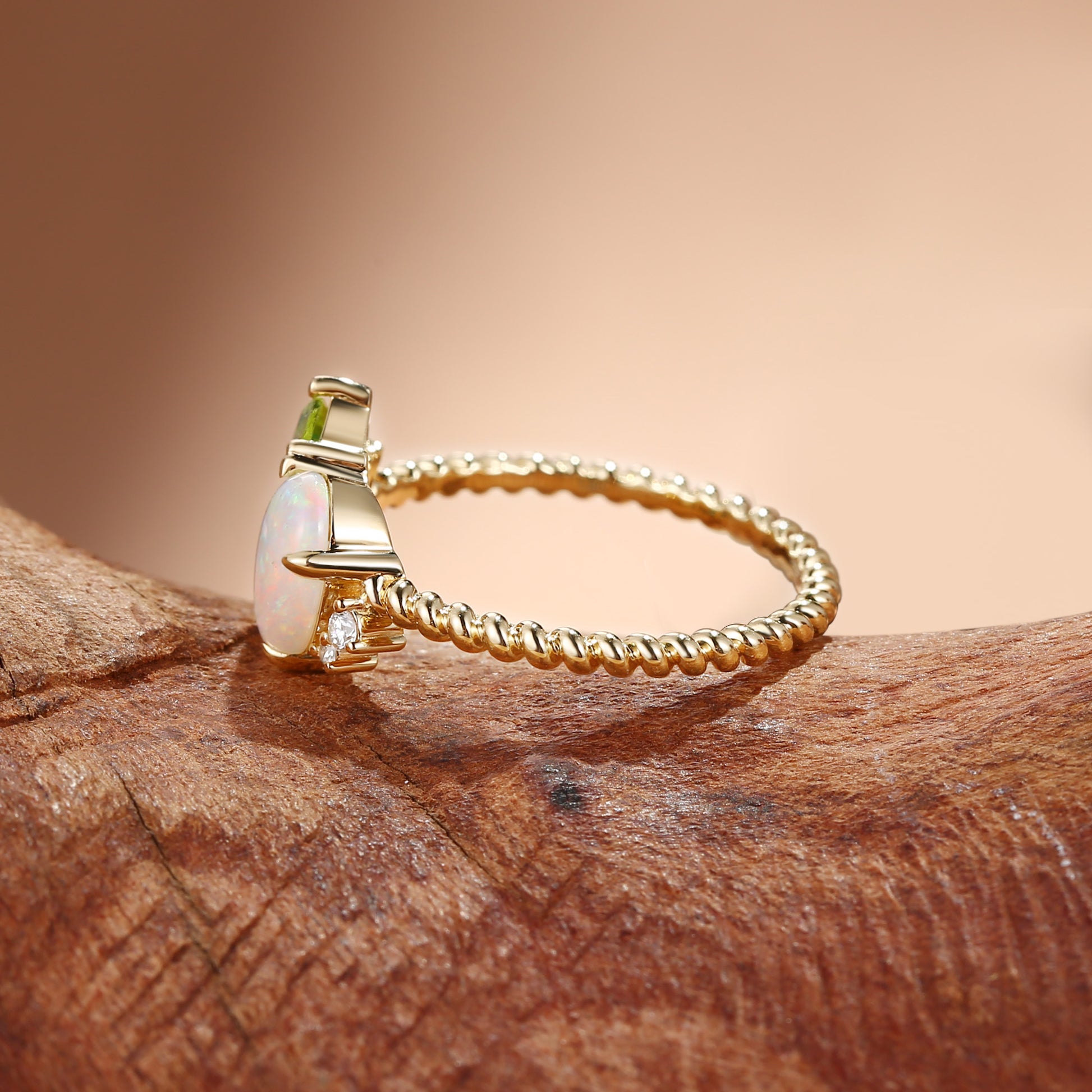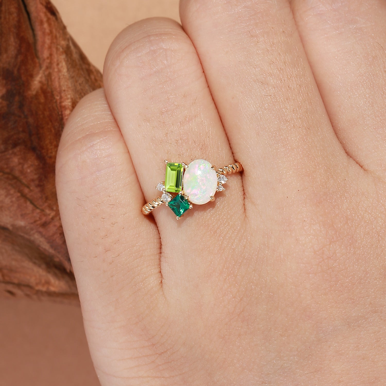 Apricot - Opal & Emerald & Peridot Three Stone Birthstone Engagement Ring