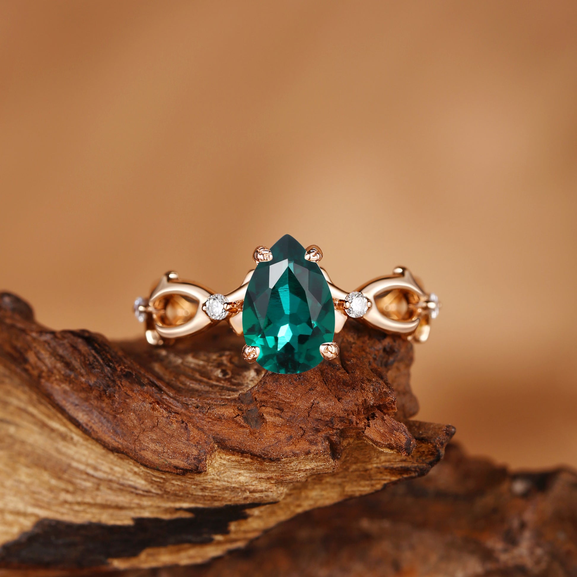 Beatrice - Unique Pear Cut Emerald Thorns Engagement Ring