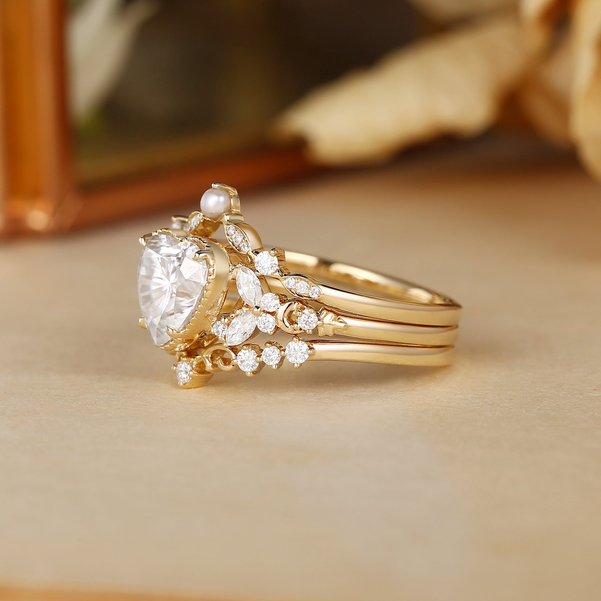 Blanche - Heart Cut Moissanite Butterfly Pearl Ring Bridal Sets 3pcs