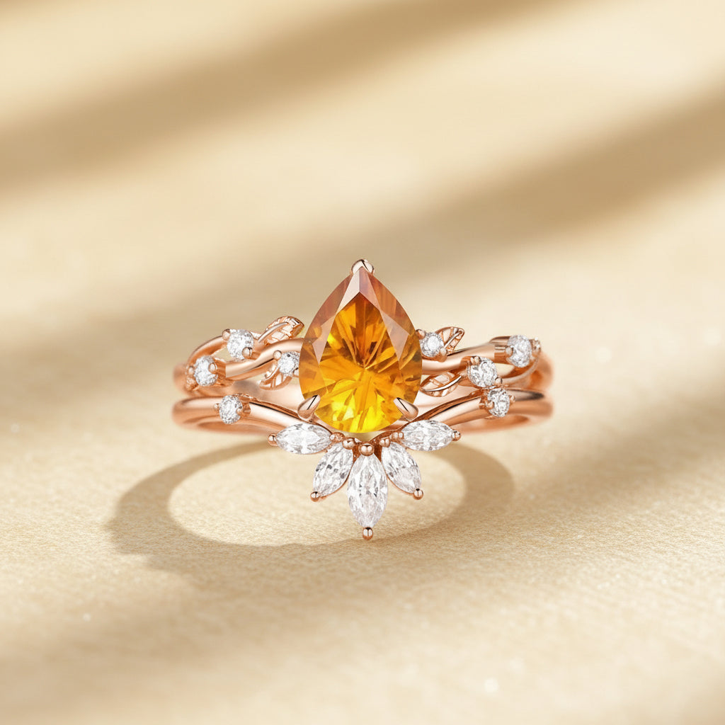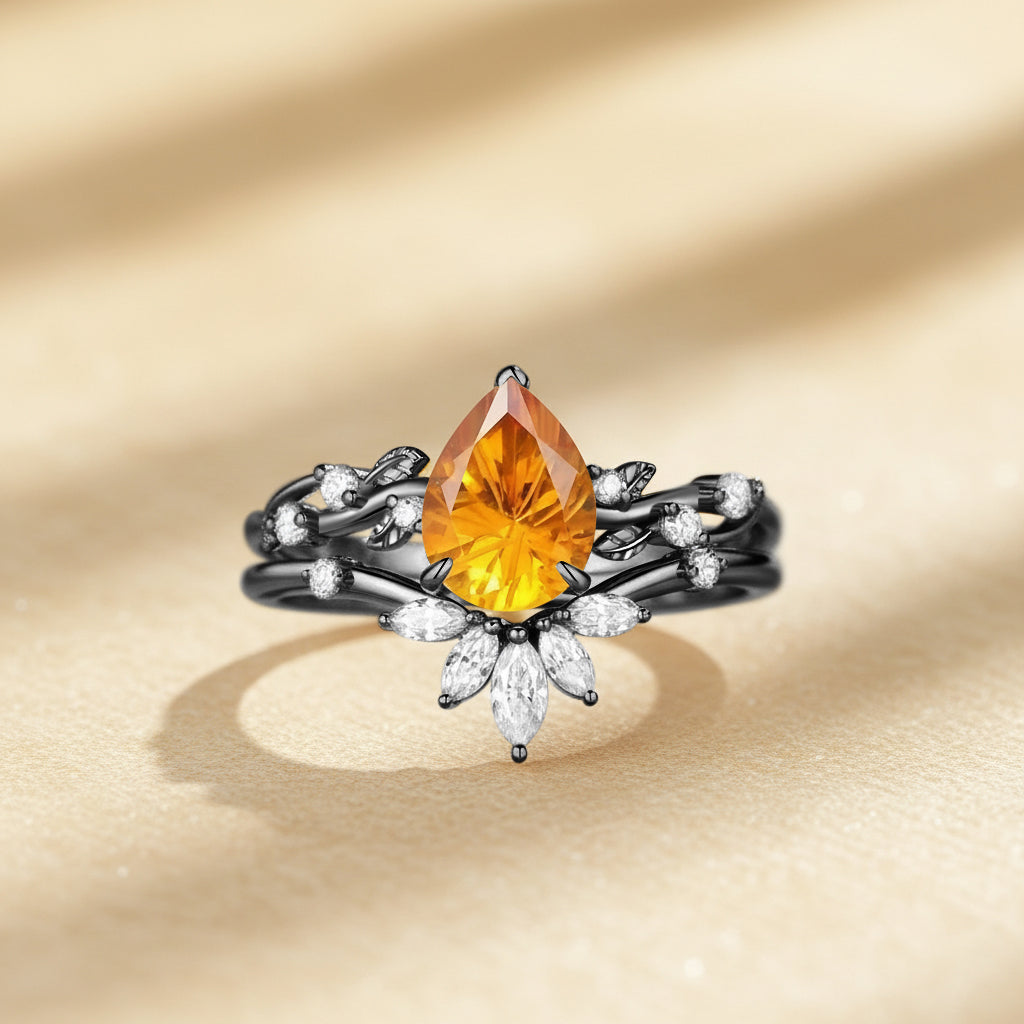 Clarissa - Firework Pear Cut Citrine Vine Inspired Leafy Bridal Set 2pcs