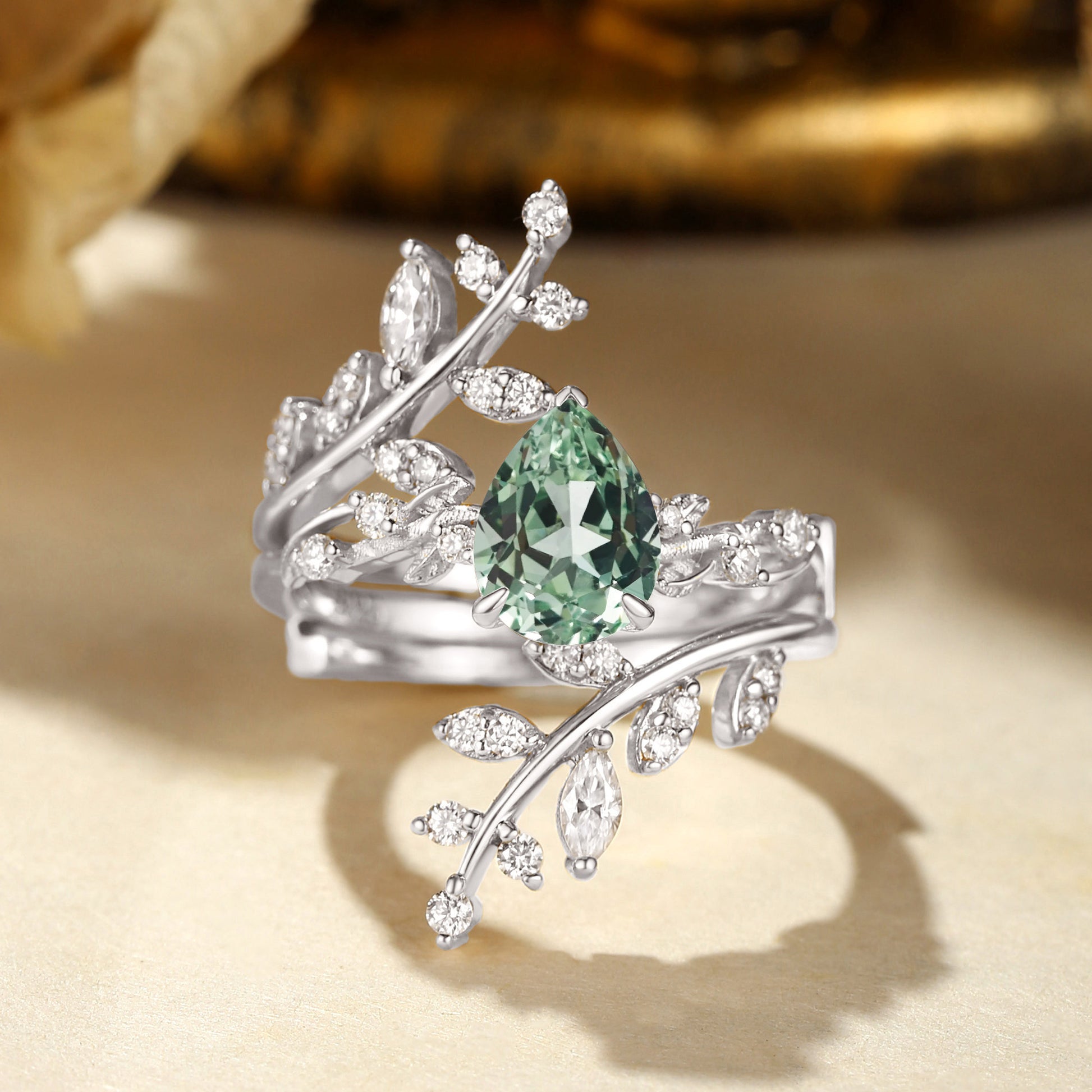 Elaine - Pear Cut Mint Green Sapphire Enhancer Bridal Set 2pcs