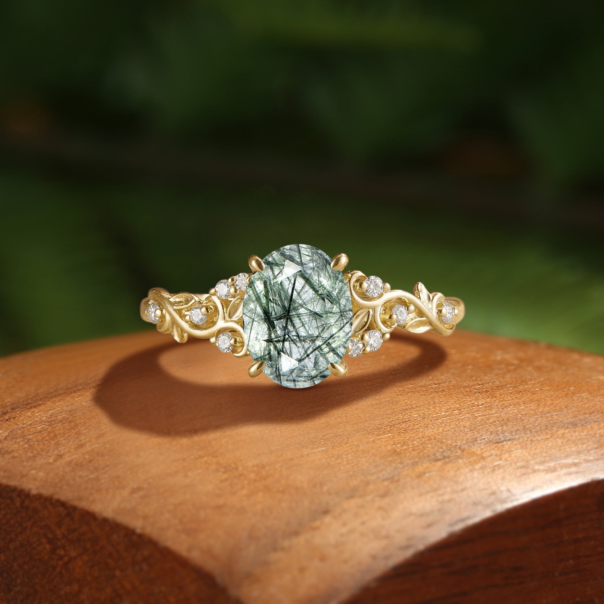 Forest Fairy Oval Cut Green Rutilated Quartz Victorian Filigree Engagement Ring - Breeze