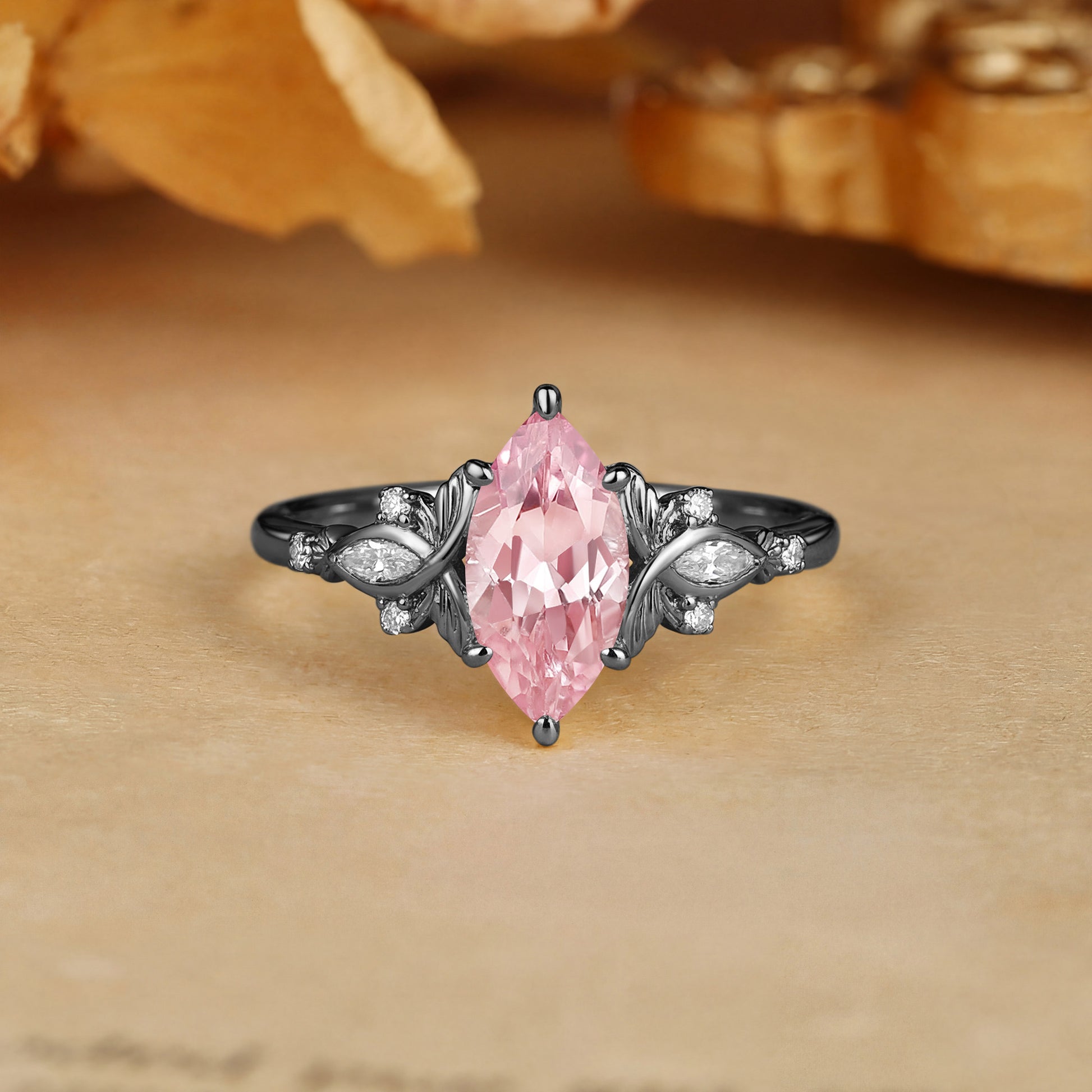 Forest Fariy Marquise Cut Pink Sapphire Leafy Engagement Ring - Letitia