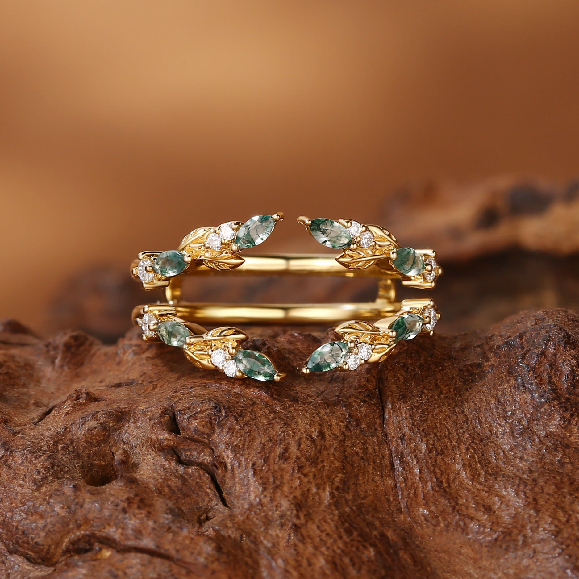 Greta - Moss Agate Leafy Inspired Enhancer Wedding Band
