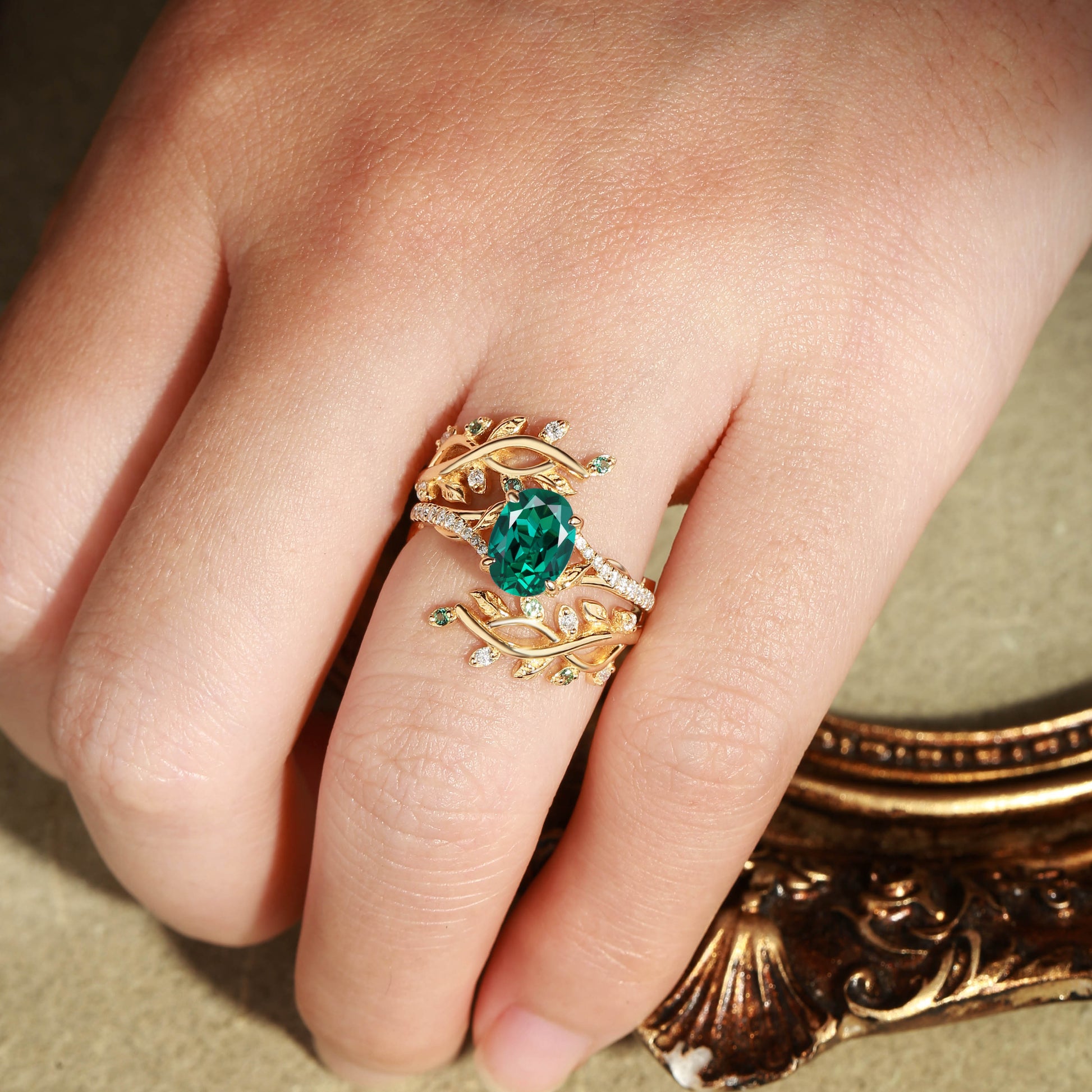 Hermine - Lab Emerald & Alexandrite Engagement Enhancer Ring Set 2pcs
