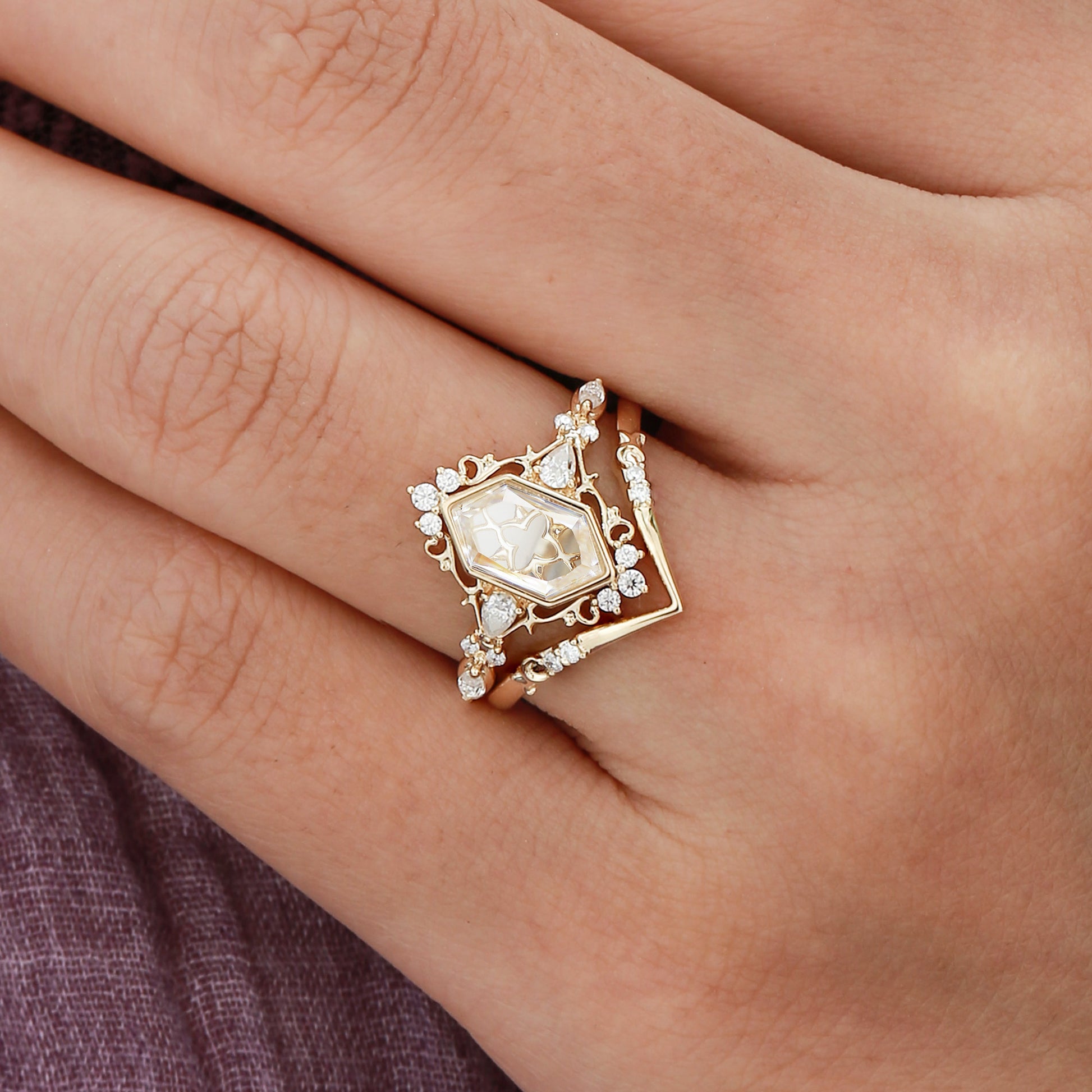 Swan - Portrait Cut Hexagon Moissanite Princesscore Vintage Bridal Set 2pcs