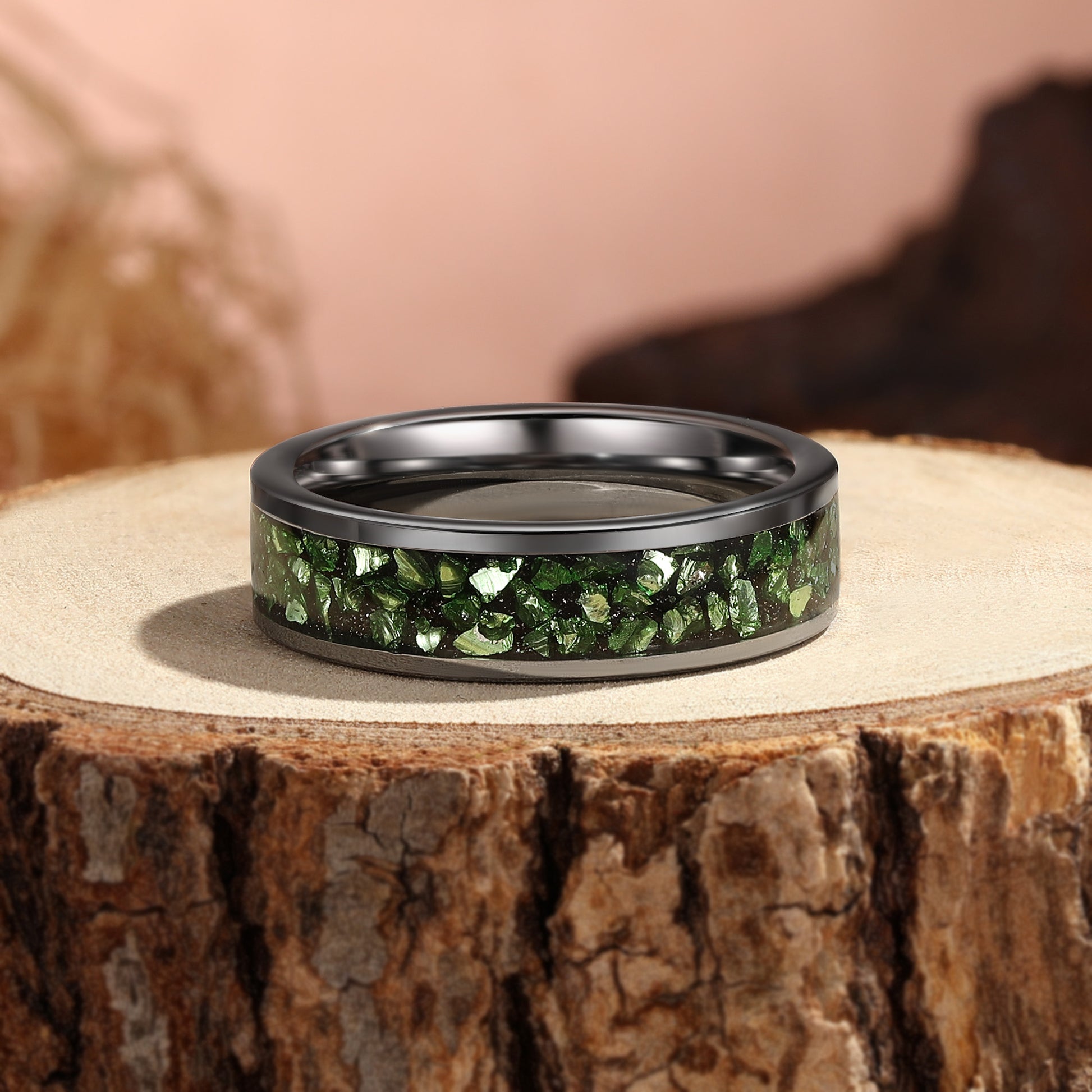 Unique Black Inlay Green Forest Elf Men Wedding Band