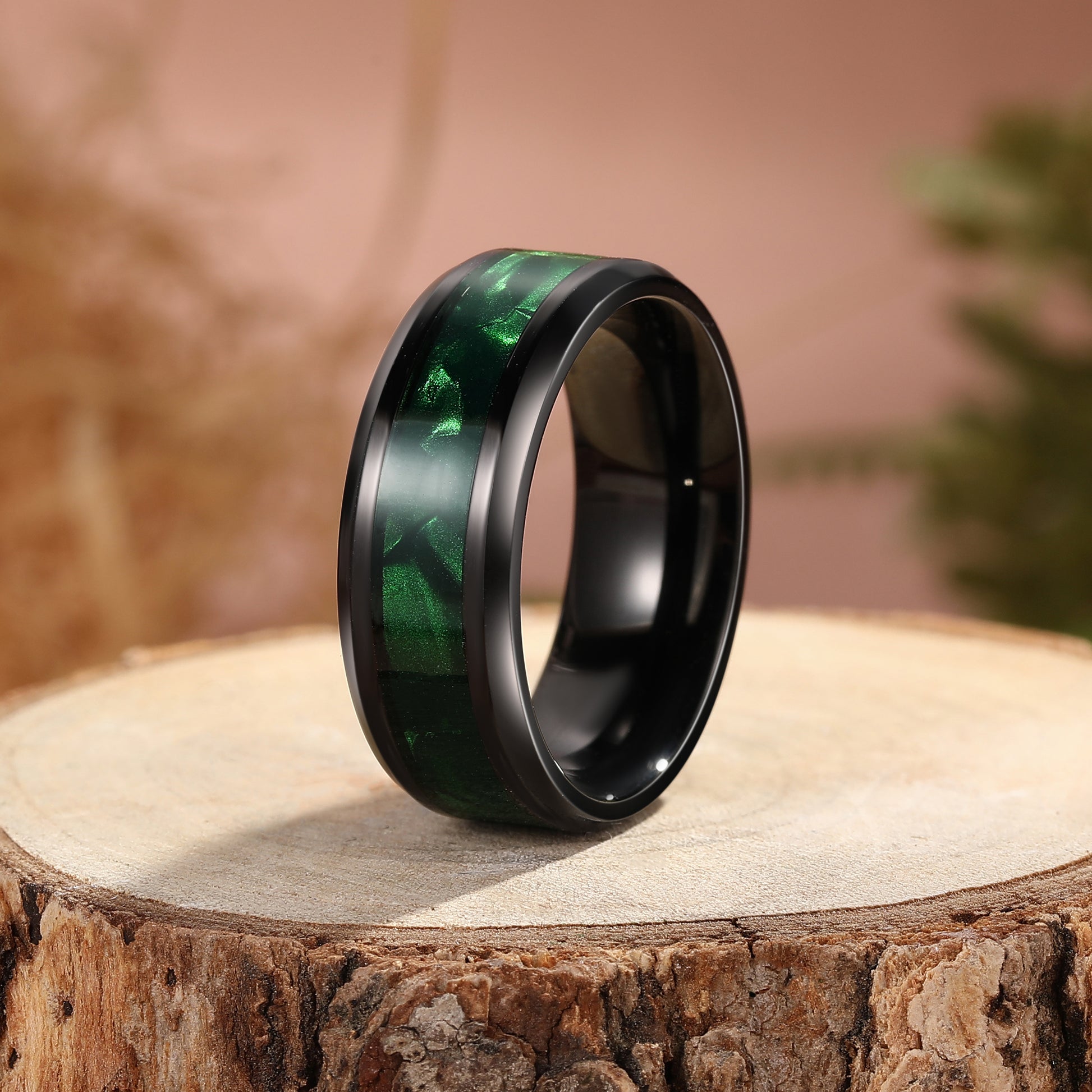 Unique Black Inlay Green Forest Tungsten Steel Men Wedding Band