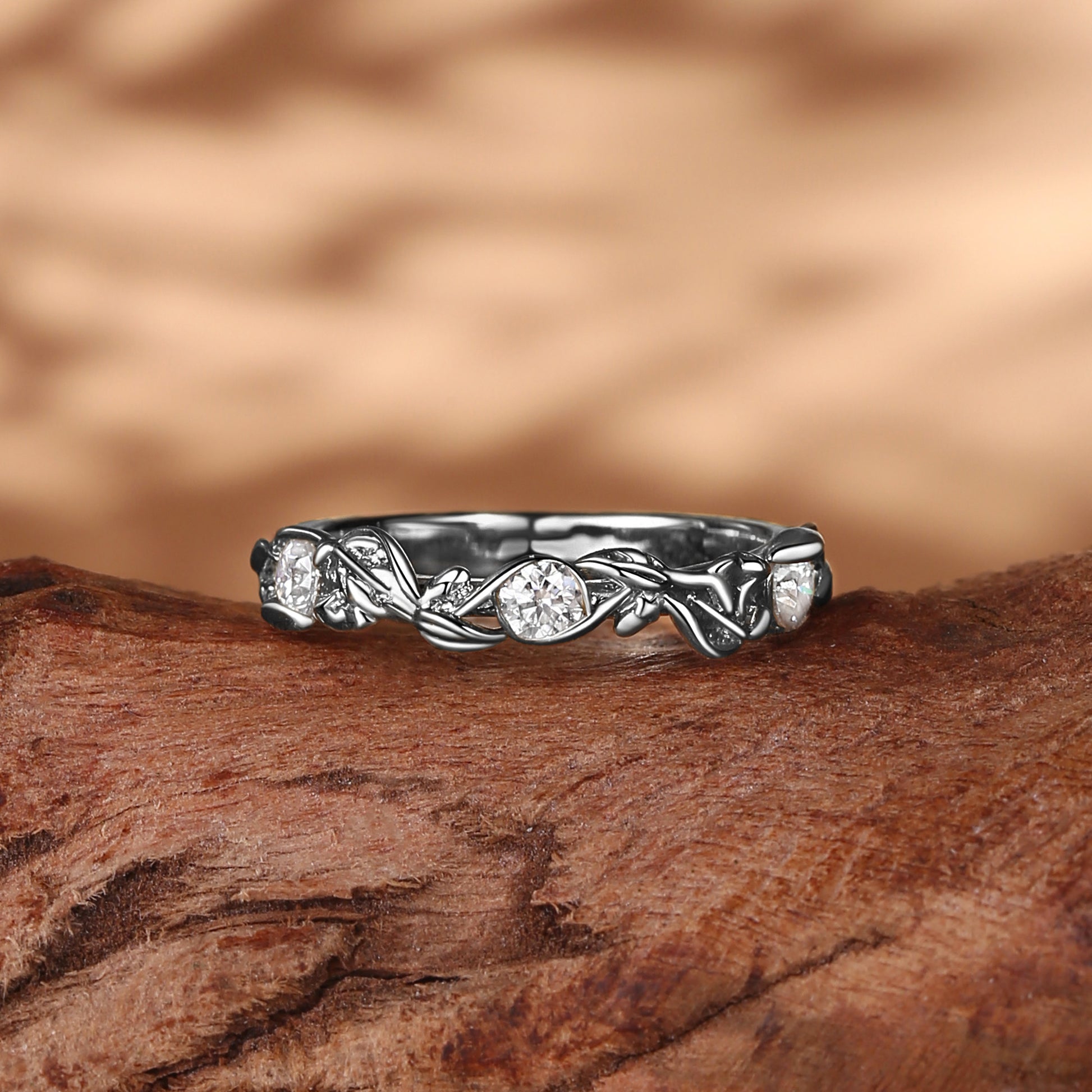 Wedding Band - Leafy White Gold Moissanite Wedding Band Women
